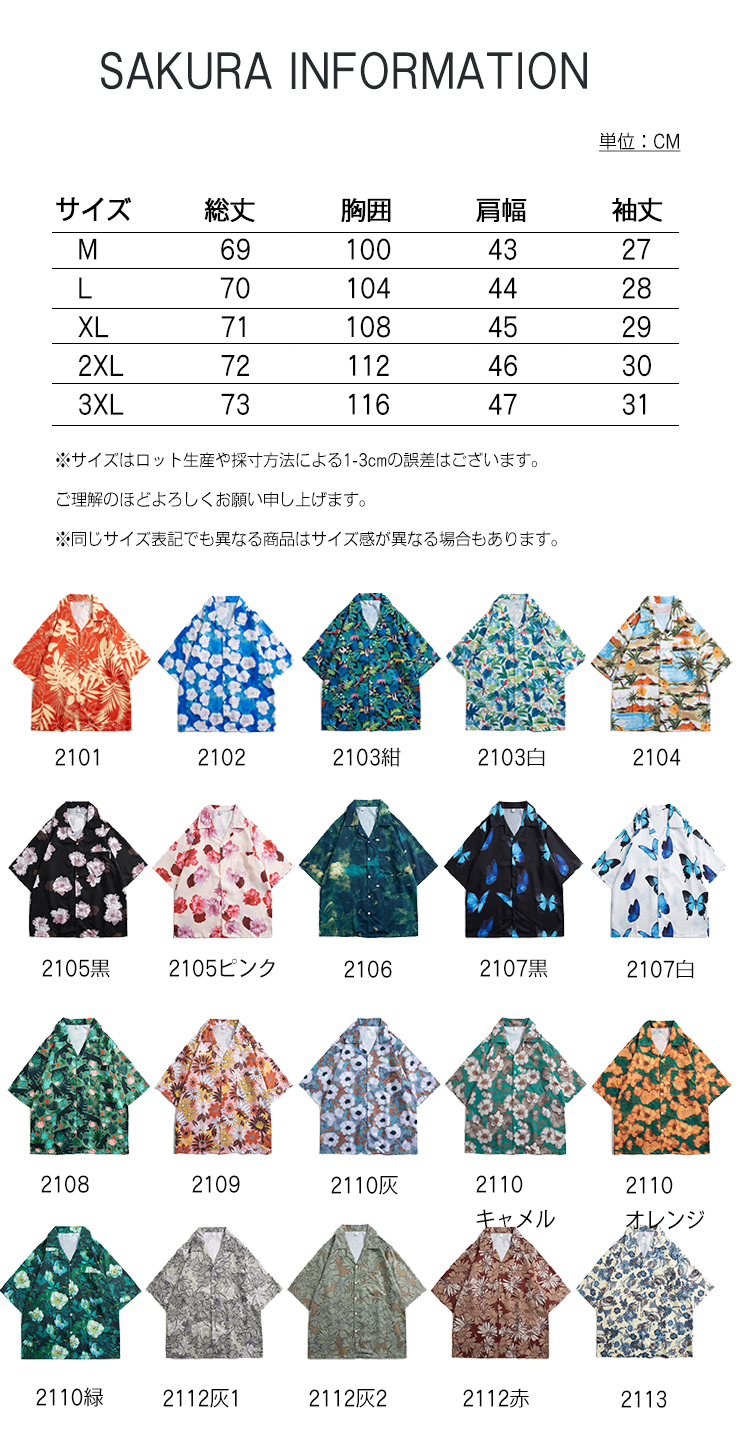 アロハシャツ ユニセックス レディース メンズ トップス シャツ ブラウス 夏物 夏服 夏用 半そで 半袖 柄シャツ 総柄 ボタニカル 衿 襟 大きいサイズ ゆったり 夏 プリント オープンカラー