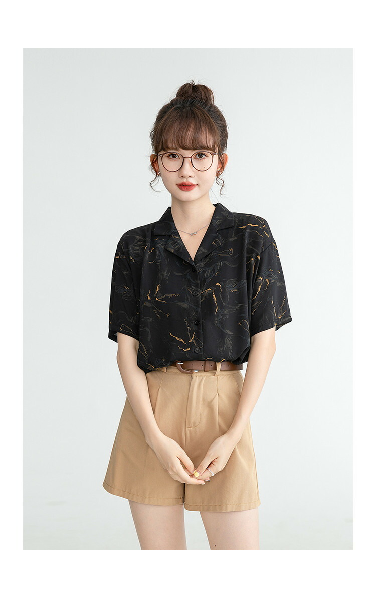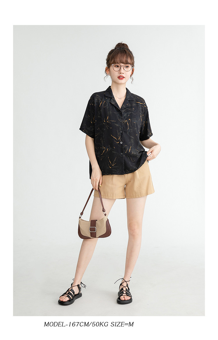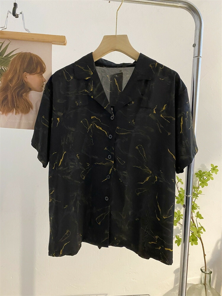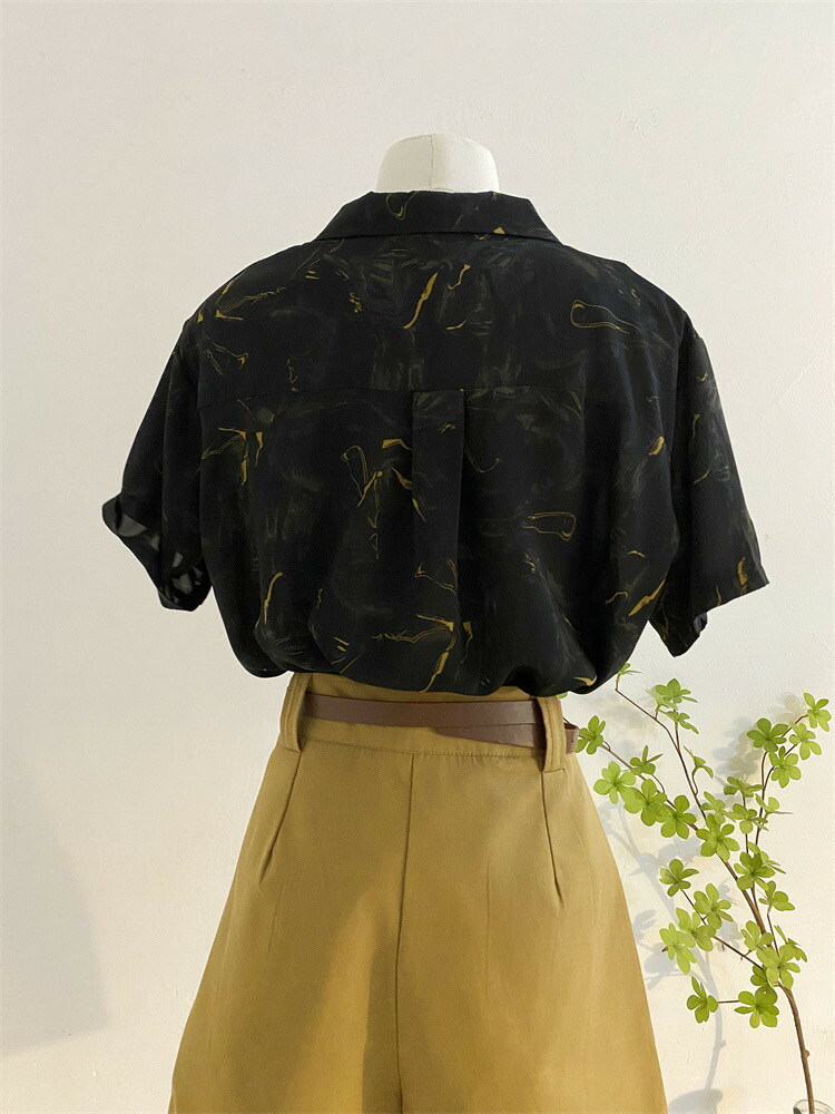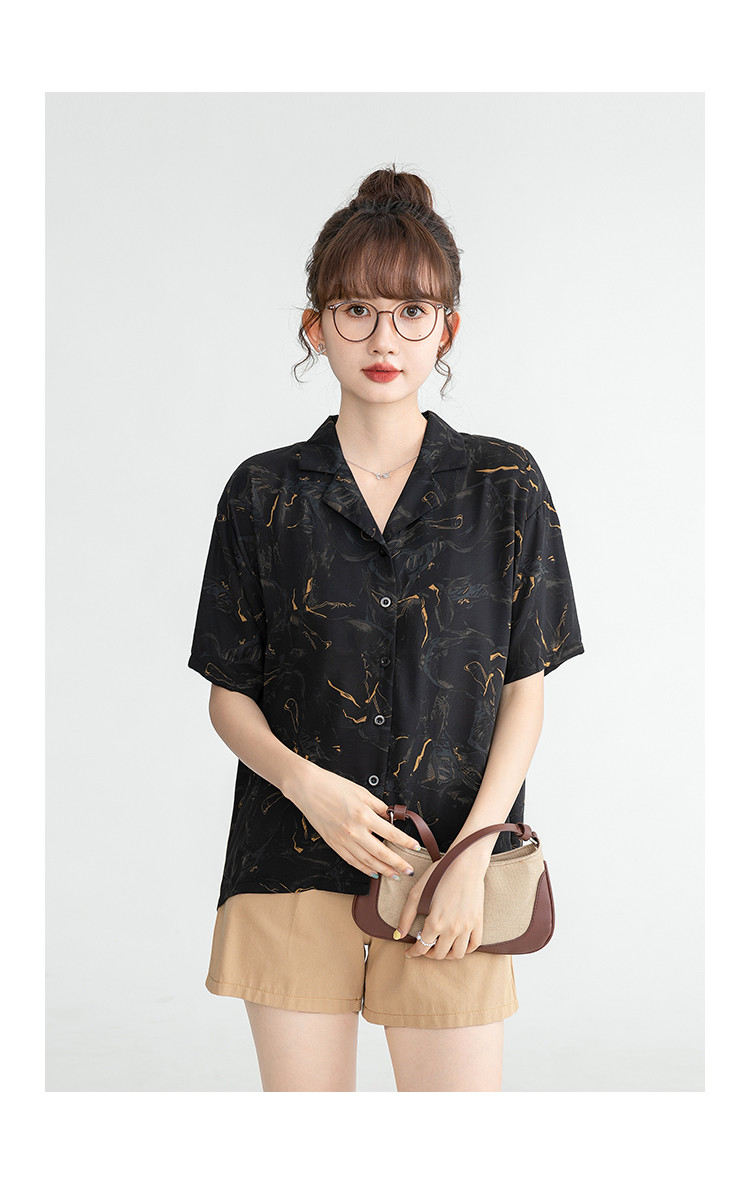 ブラウス トップス シャツ レディース 半袖 オープンカラー 羽織り アロハ 薄手 総柄 きれいめ 大きいサイズ ゆったり 春 夏 柄ブラウス