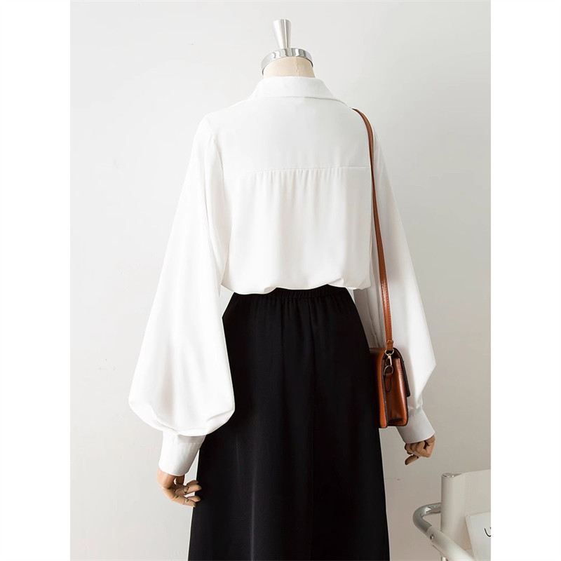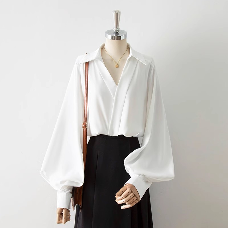 ボリューム袖 ブラウス プルオーバー Vネック レディース 長袖 襟 バルーン袖 パフスリーブ オフィス OL フォーマル ゆったり きれいめ 上品 おしゃれ 無地 シフォン 大人 トップス 春秋 ス