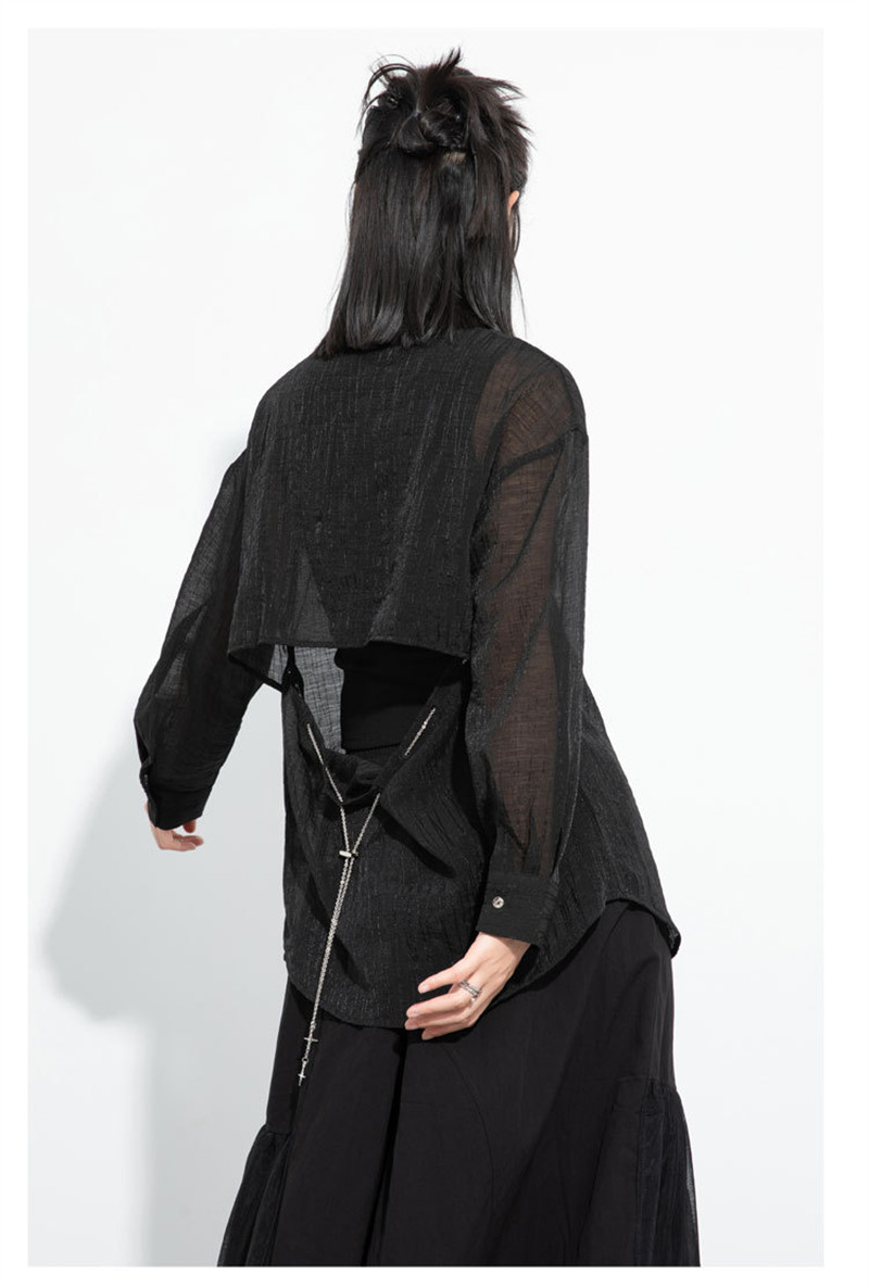 シアースリーブ ドッキングシャツ ボウタイシャツブラウス