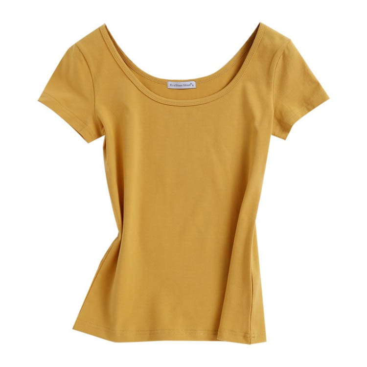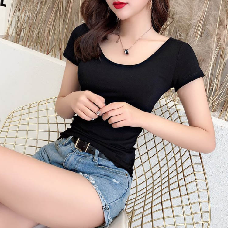 タイト tシャツ 無地 Uネック 半袖