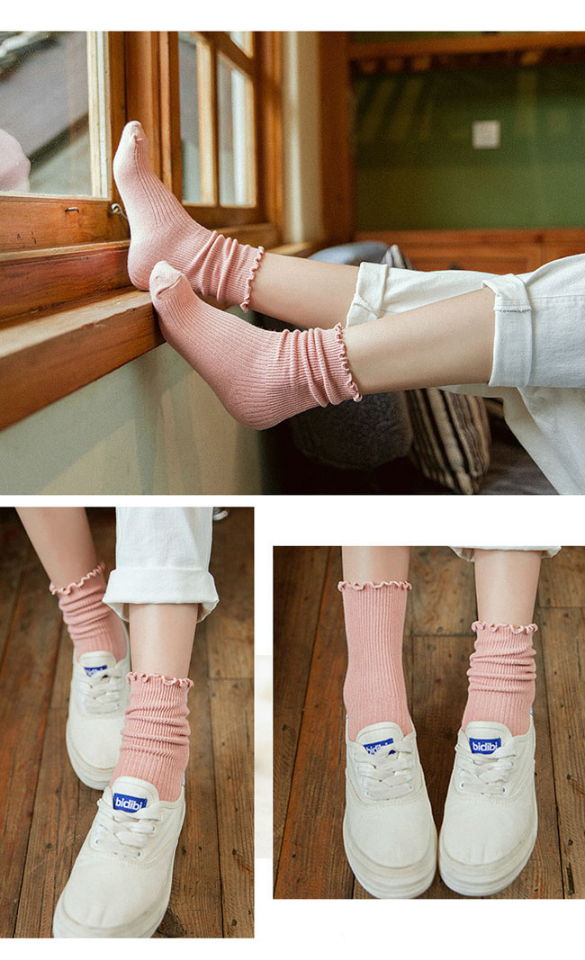 靴下 レディース ソックス ショートソックス ミドル丈 レディース靴下 綿 くしゅくしゅ ゆるふわ ガーリー おしゃれ かわいい 婦人 女性 レディースソックス 履き心地抜群 秋冬 イエロー
