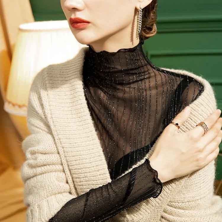 ラメ入り シアートップス 長袖 タート