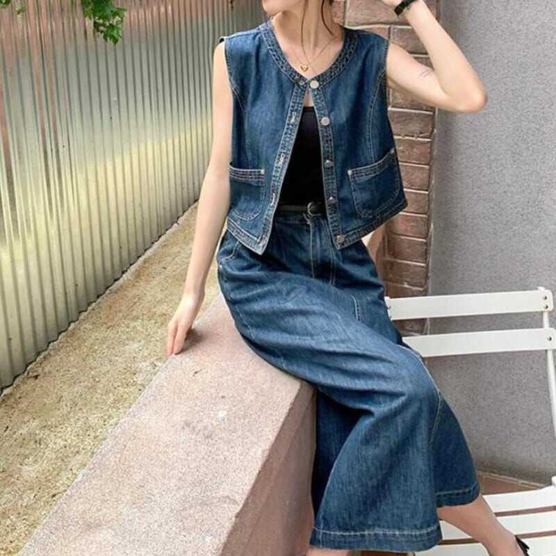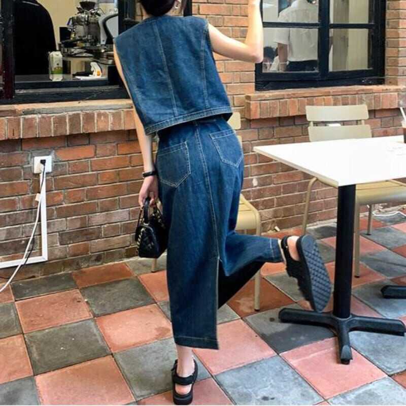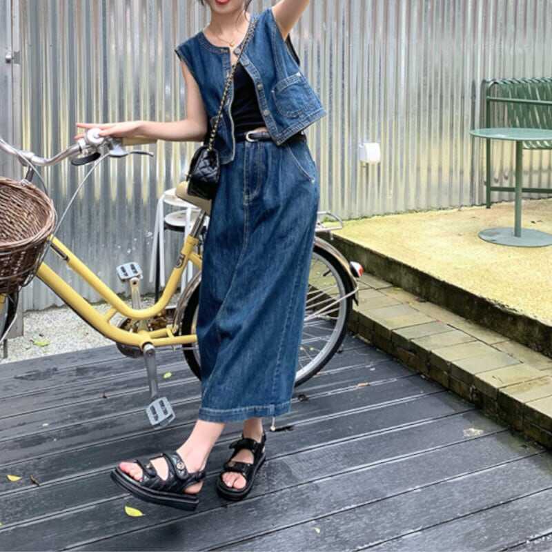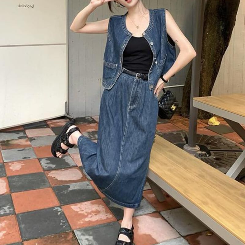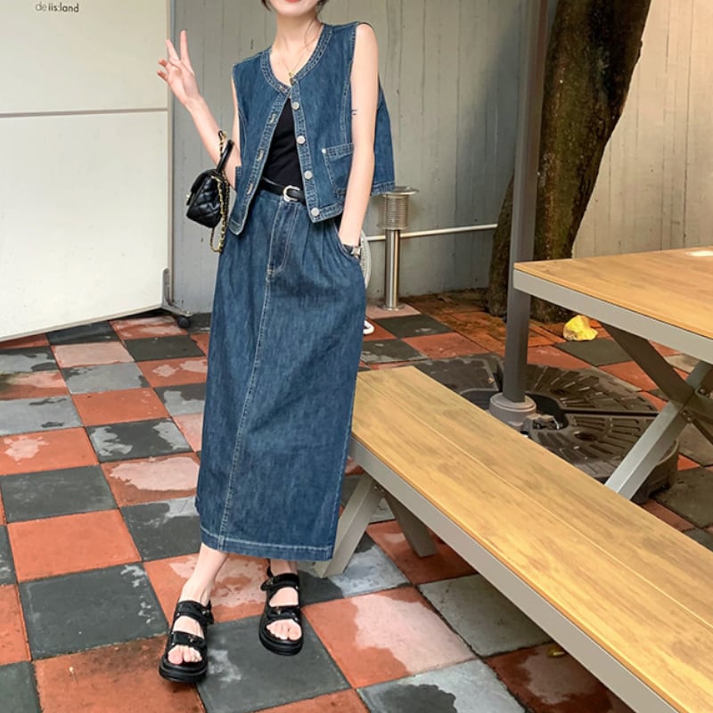 セットアップ ベスト デニムスカート