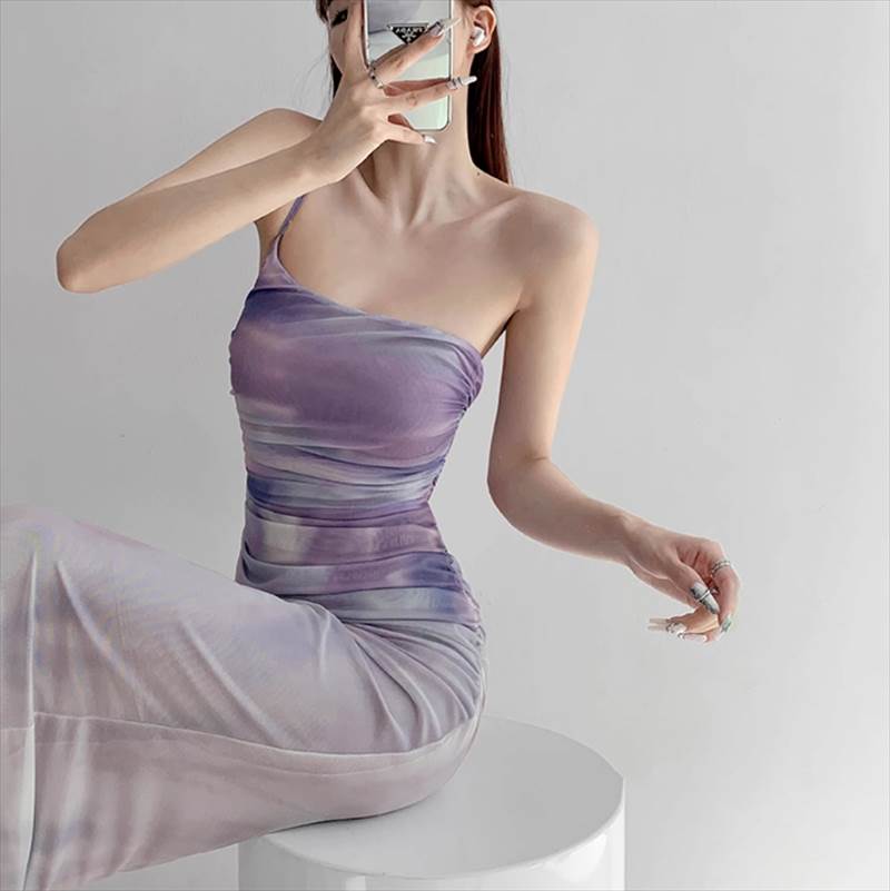 ワンピース パーティー ステージ キャバ ラウンジ クラブ ロング 袖なし ノースリーブ スクエアネック ワンショル スレンダー タイト スリム カクテル カジュアル バックシャン バックコンシャス シャーリング 可愛い きれいめ シンプル カジュアル 大人可愛い おしゃれ かっこいい レトロ キュート ガーリー クール エレガント 抜け感 セクシー ナチュラル イベント リゾート 旅行 ホテル ガーデン レストラン 高原 韓国 美脚 脚長 高見え 格上げ XS S M L スリム 大人 女性 パープル