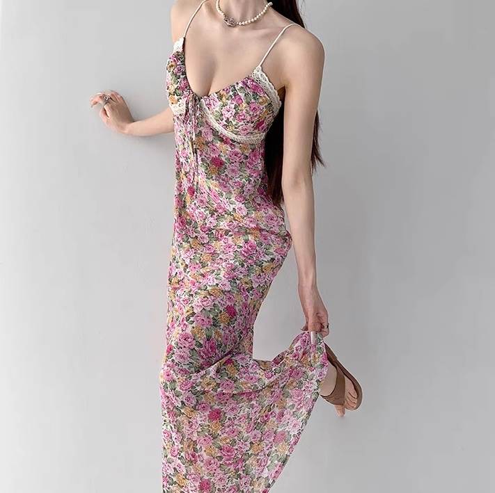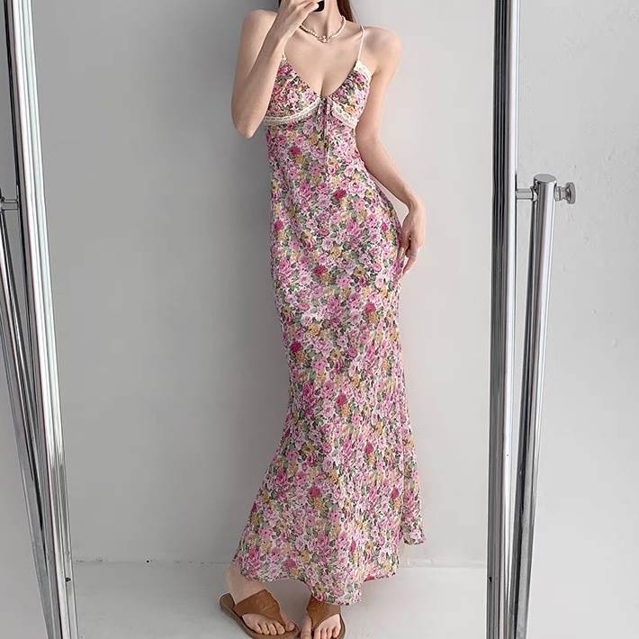 ワンピース レディース ロング マキシ 袖なし ノースリーブ タイト スリム 細身 背中開き フェミニン レース リボン ハイウエスト ギャザー かわいい 大人可愛い おしゃれ レトロ こなれ感 ガーリー ヴィンテージ ラブリー キュート クラシカル ベーシック ロマンティック ナチュラル 花柄 フラワー 夏 デート お出かけ パーティー イベント リゾート 旅行 休日 バカンス 高原 ホテル ガーデン カフェ 美脚 脚長 普段使い 着回し モテ トレンド 流行 インスタ映え 定番 S M L ピンク
