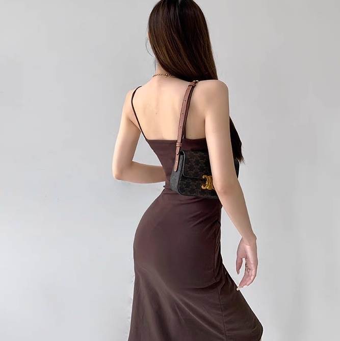 レイヤードシックな2点セットのキャミワンピとカーディガン。