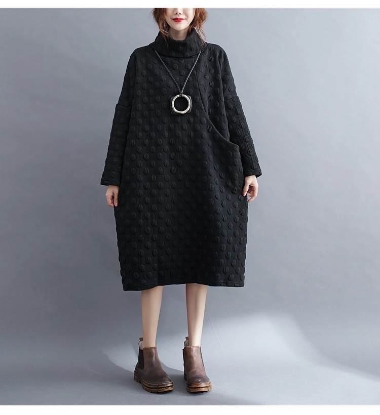 ワンピース レディース 膝丈 膝下 長袖 ハイネック タートルネック アシンメトリー オーバーサイズ フェミニン ポケット カジュアル 上品 おしゃれ レトロ こなれ感 ラフ ガーリー エレガント 抜け感 ヴィンテージ キュート カントリー ナチュラル ドット柄 水玉 秋 冬 お出かけ イベント 旅行 休日 お花見 楽ちん 体型カバー 普段使い 着回し レイヤード トレンド 流行 インスタ映え L XL 大きいサイズ ビッグ ゆったり ゆる 黒 ブラック ブルー ネイビー ベーシックカラー 大人カラー