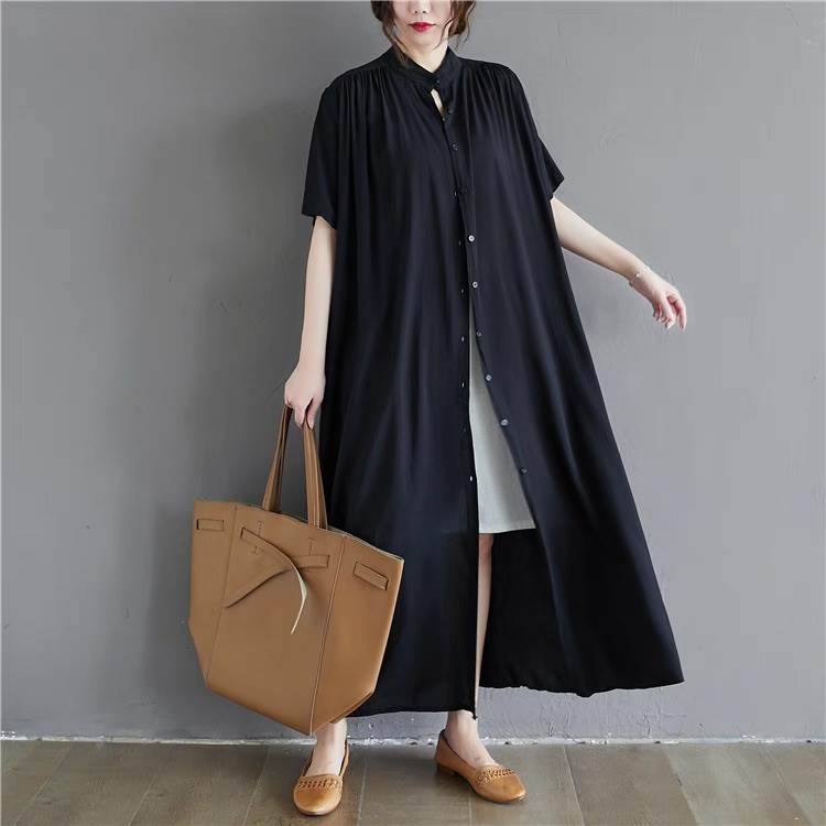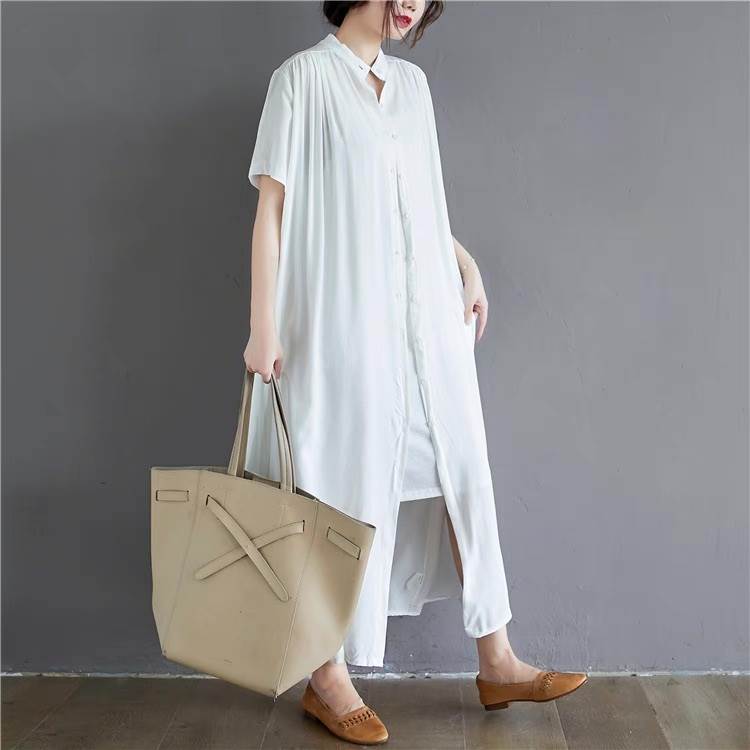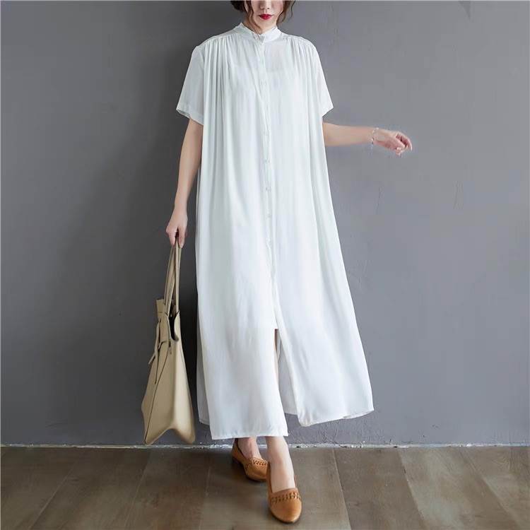 ワンピース レディース シャツワンピ フレア 前開き マキシ 半袖 スタンドカラー Aライン フェミニン ストリート かわいい 大人可愛い きれいめ シンプル カジュアル おしゃれ かっこいい レトロ ガーリー ルーズ 抜け感 ベーシック アクティブ ナチュラル 無地 夏 お出かけ リゾート 旅行 ビーチ 休日 バカンス ショッピング カフェ フェス 重ね着 楽ちん 普段使い 着回し トレンド 流行 インスタ映え 定番 ゆったり ゆる フリーサイズ 白 ホワイト 黒 ブラック モノトーン ベーシックカラー