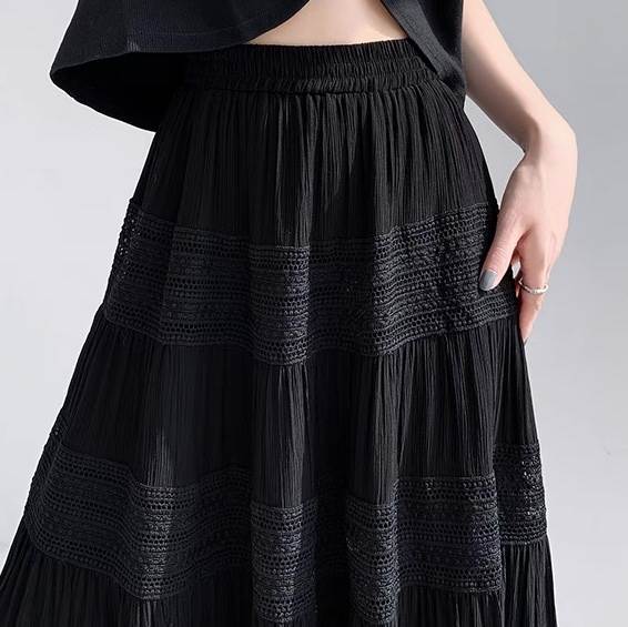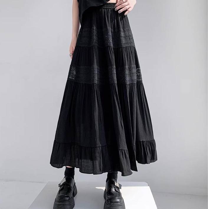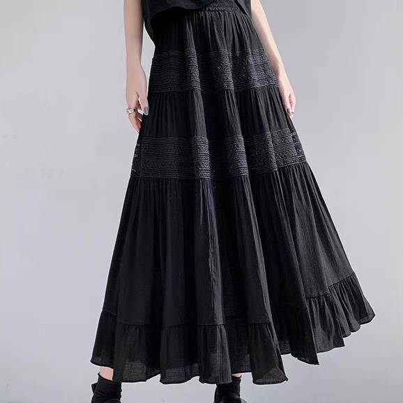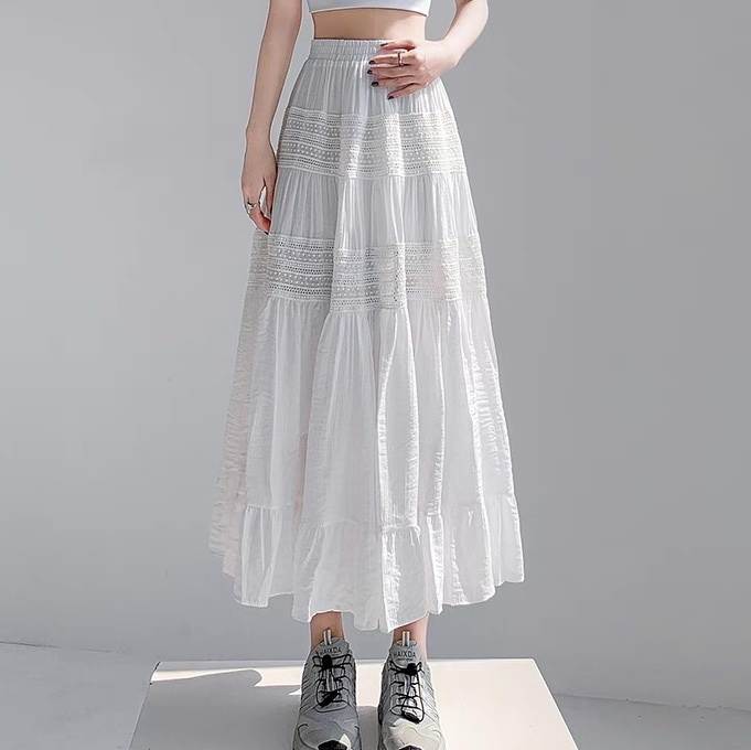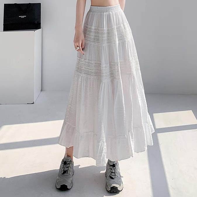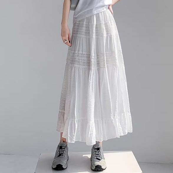 スカート ボトムス レディース フレア ティアード カラースカート フレアスカート ロング マキシ Aライン フェミニン レース 刺繍 ハイウエスト ウエストゴム 透け感 ヴィンテージ 大人可愛い おしゃれ レトロ ガーリー ラブリー キュート ロリータ クラシカル ベーシック ロマンティック 春 夏 お出かけ イベント リゾート 旅行 レストラン 休日 バカンス オルチャン コーデ 楽ちん 体型カバー 脚長 普段使い 着回し トレンド 流行 インスタ映え S M L XL 白 ホワイト 黒 ブラック