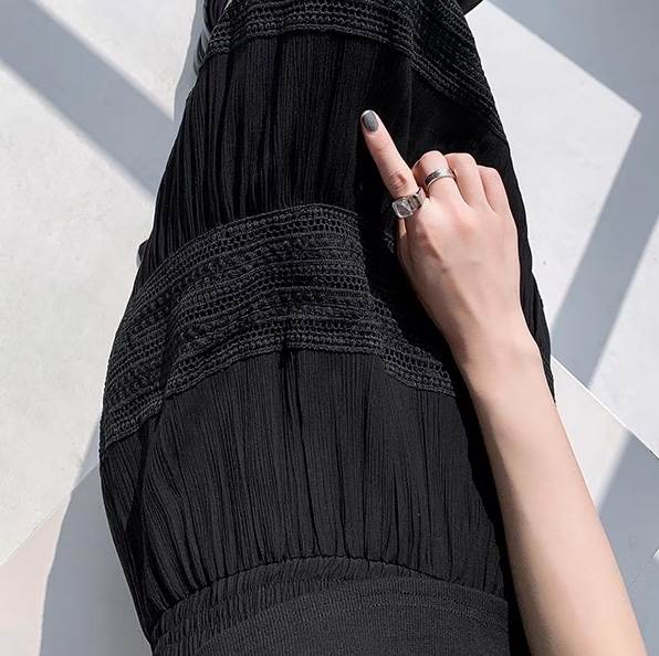 透け感のあるレースと刺繍で、春夏のリゾートやイベントにぴったりなヴィンテージ感を演出。