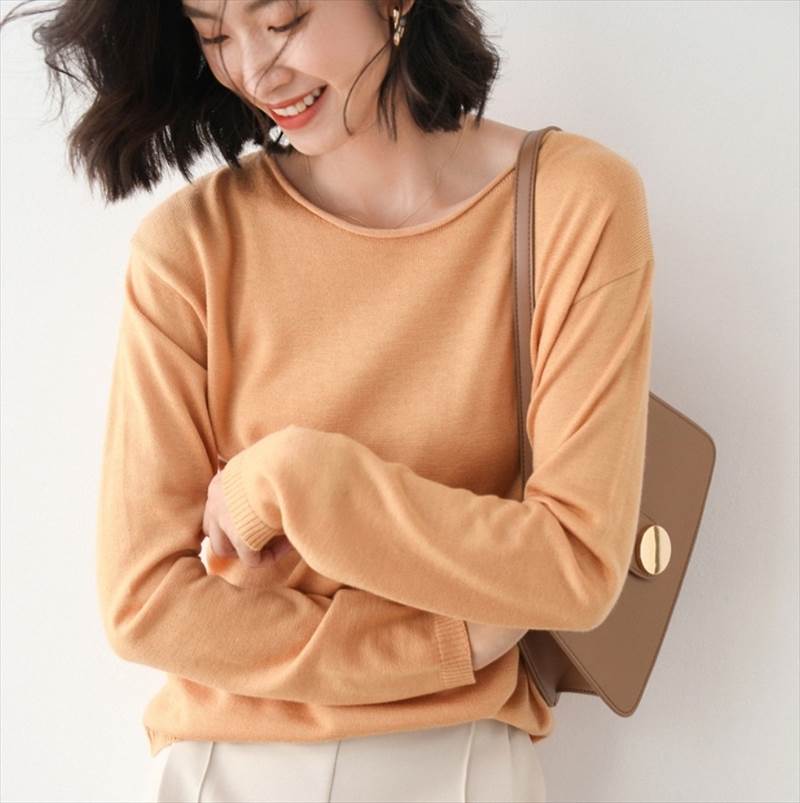 鮮やかなカラーバリエーションで毎日を彩る、春秋の重ね着コーデにぴったりな一枚です。