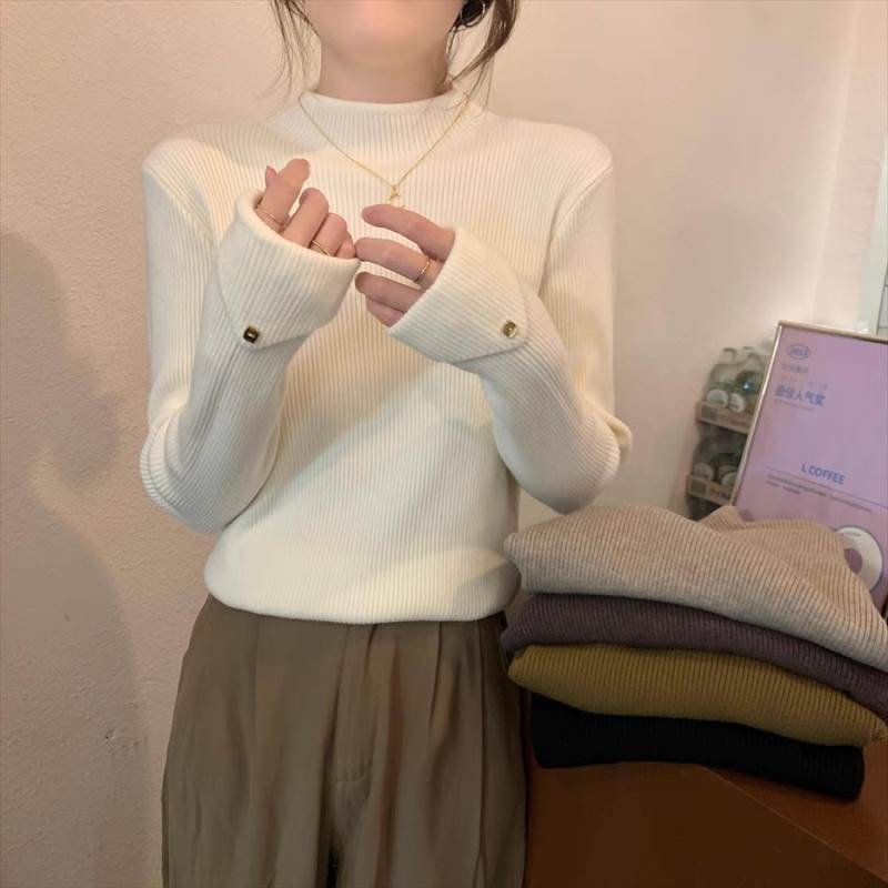 トップス ニット セーター プルオーバー レディース 長袖 ボトルネック フェミニン ボタン かわいい 大人可愛い きれいめ シンプル カジュアル おしゃれ かっこいい レトロ こなれ感 ラフ ガーリー 抜け感 キュート ベーシック アクティブ ナチュラル 無地 秋 冬 お出かけ 旅行 休日 ショッピング カフェ 重ね着 暖かい 普段使い 着回し レイヤード ロールアップ 流行 定番 S M L XL 白 ホワイト 黒 ブラック 茶色 ブラウン グレー 緑 グリーン ベーシックカラー 大人カラー 秋カラー