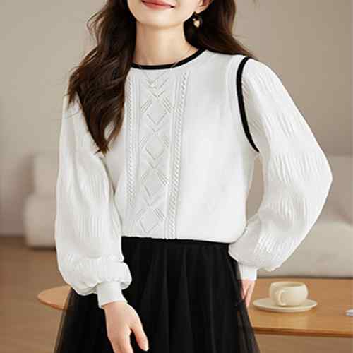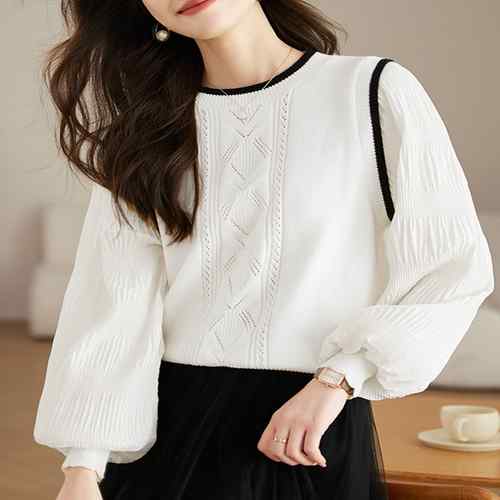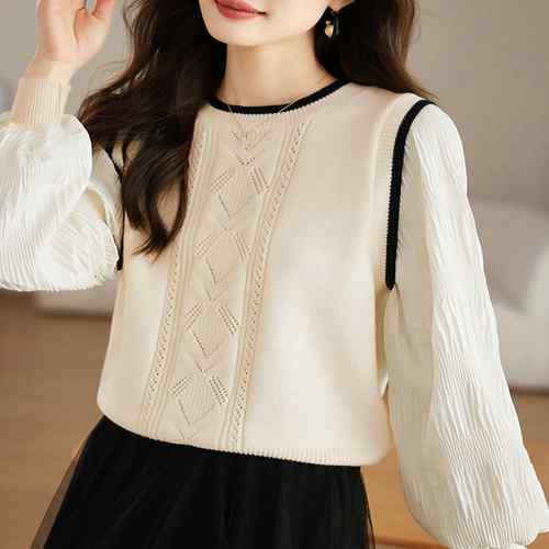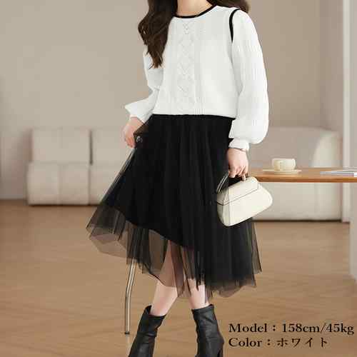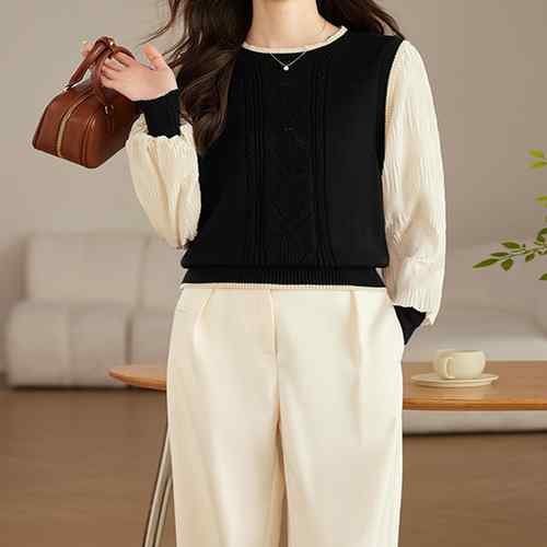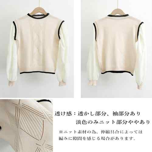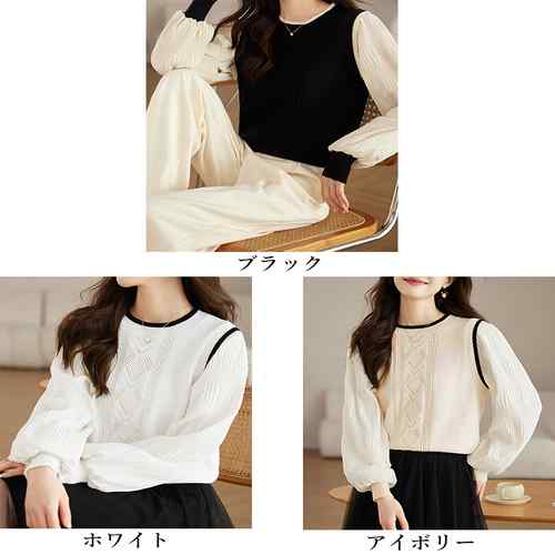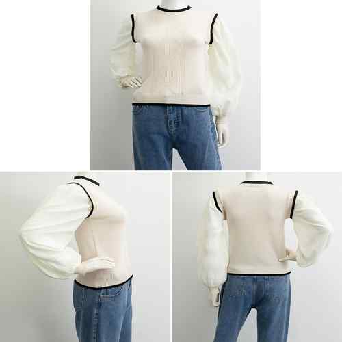 シフォン袖 切り替えニットトップス パ