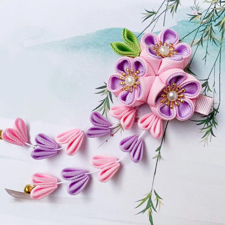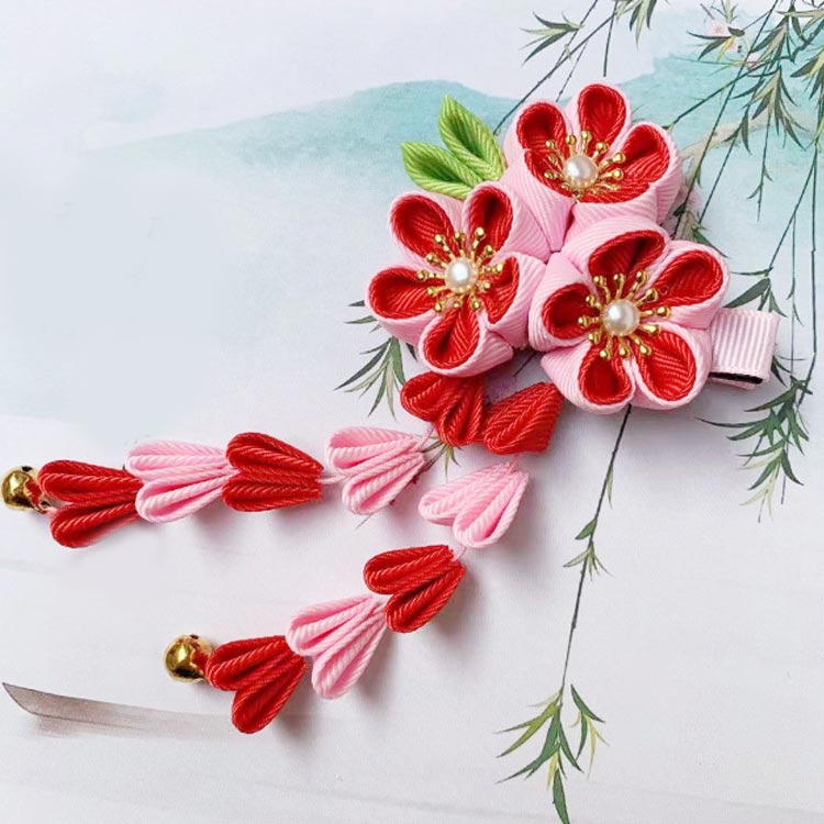 選べる2個セット ぶら下がり付き つまみ細工 ヘアアクセ 髪飾り かんざし 着物 浴衣 夏祭り 七五三 キッズ着物 和装 和柄 鈴 ゆらゆら揺れる