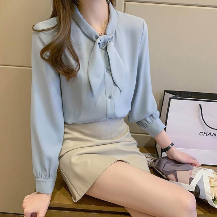 シアースリーブ ドッキングシャツ ボウタイシャツブラウス