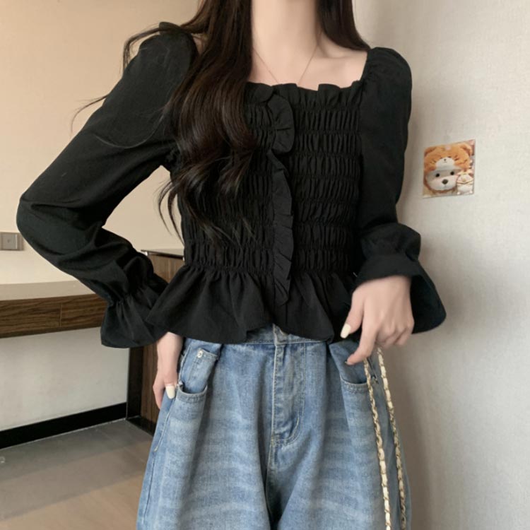 シアースリーブ ドッキングシャツ ボウタイシャツブラウス