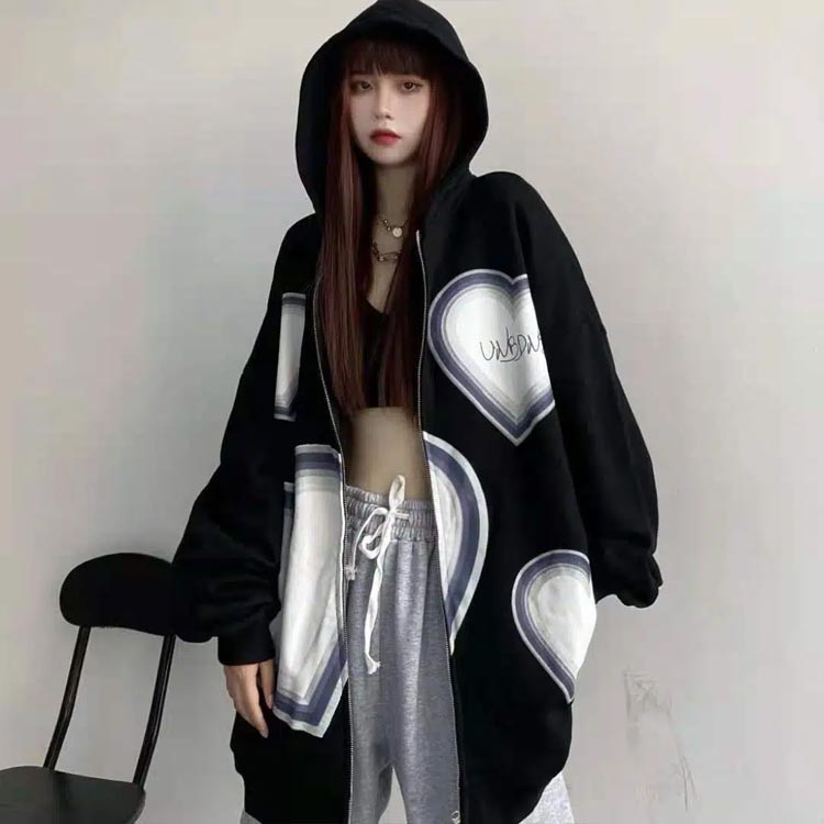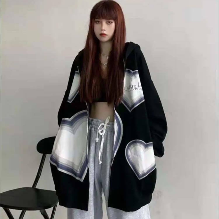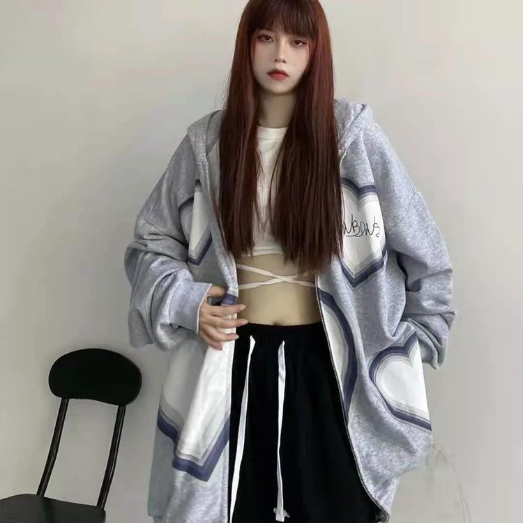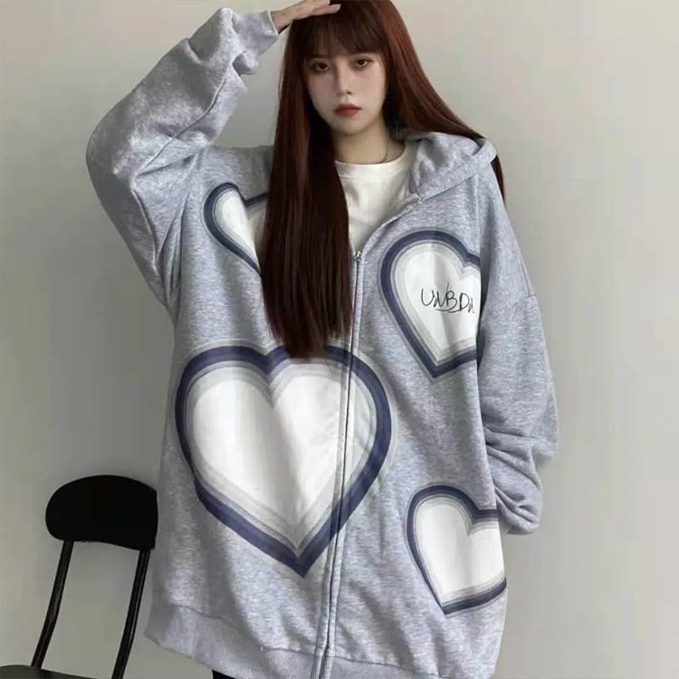 ゆるっと着られるパーカー ハート柄 フ