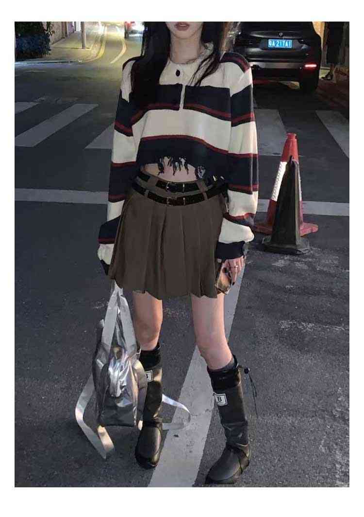 クロップド ニットトップス 長袖 レデ