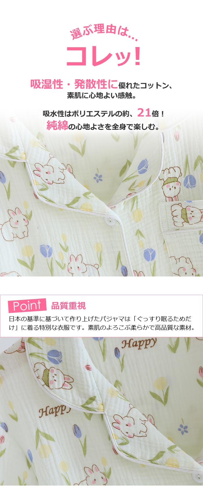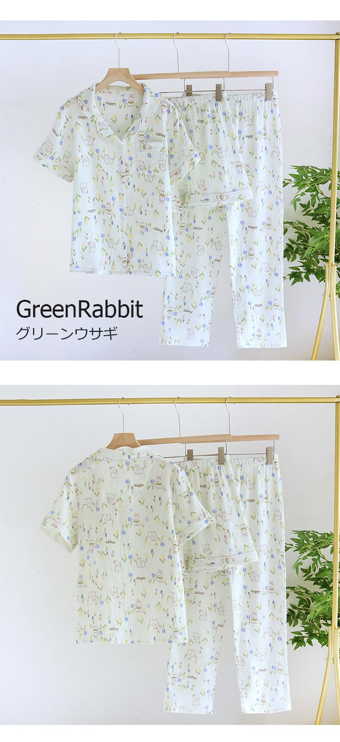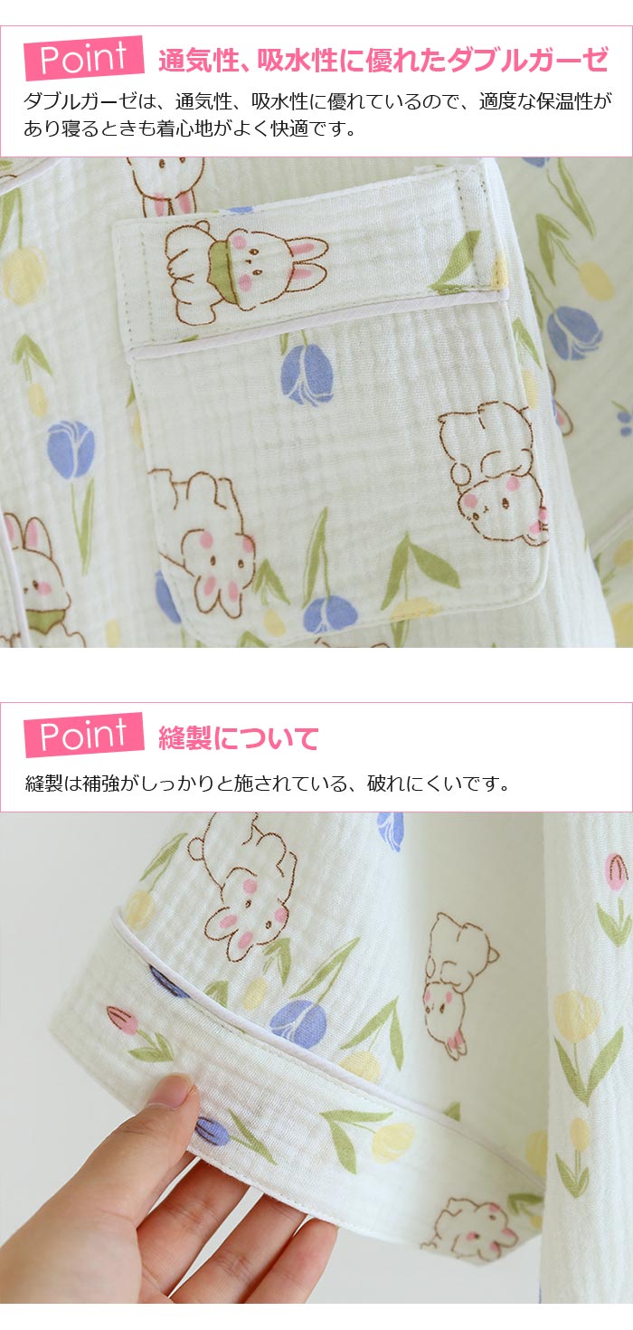 綿長袖長ズボン可愛い前開きダブルガーゼ