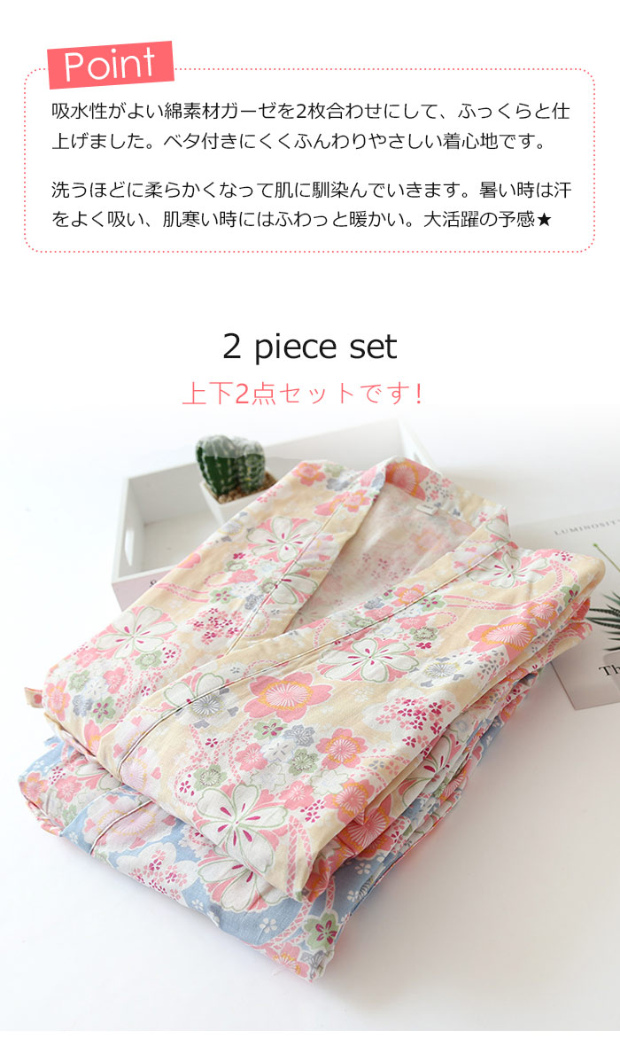 ダブルガーゼパジャマ 二重ガーゼ 和風