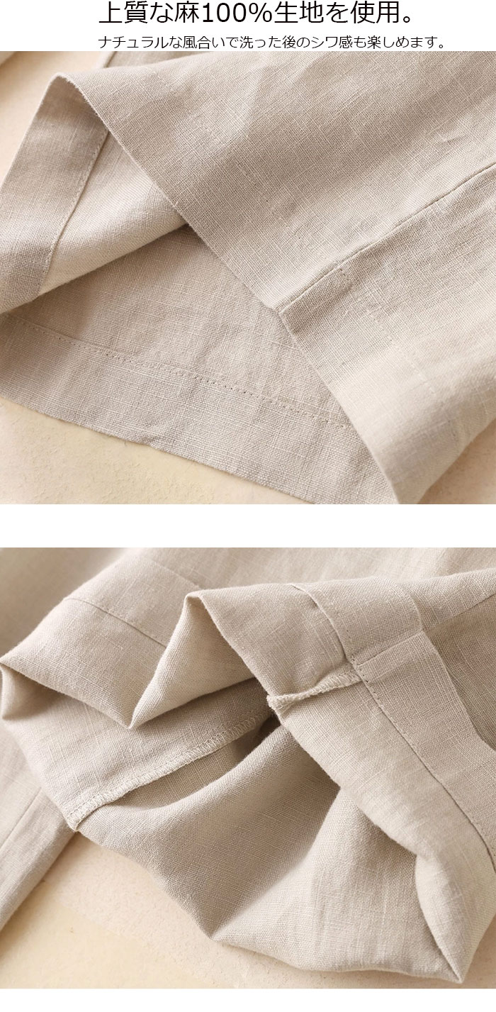 春夏女性用 フレアパンツ 9分丈 リネ