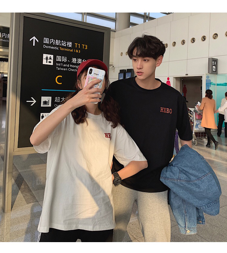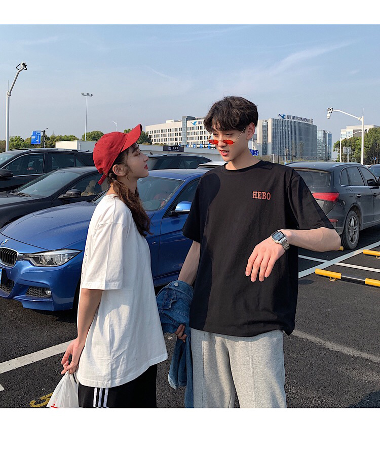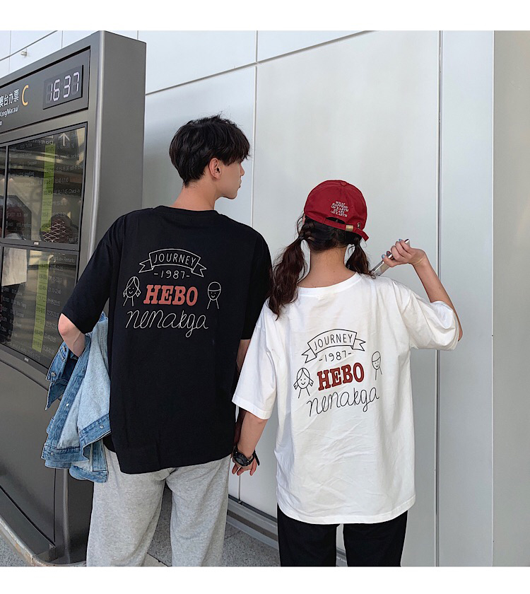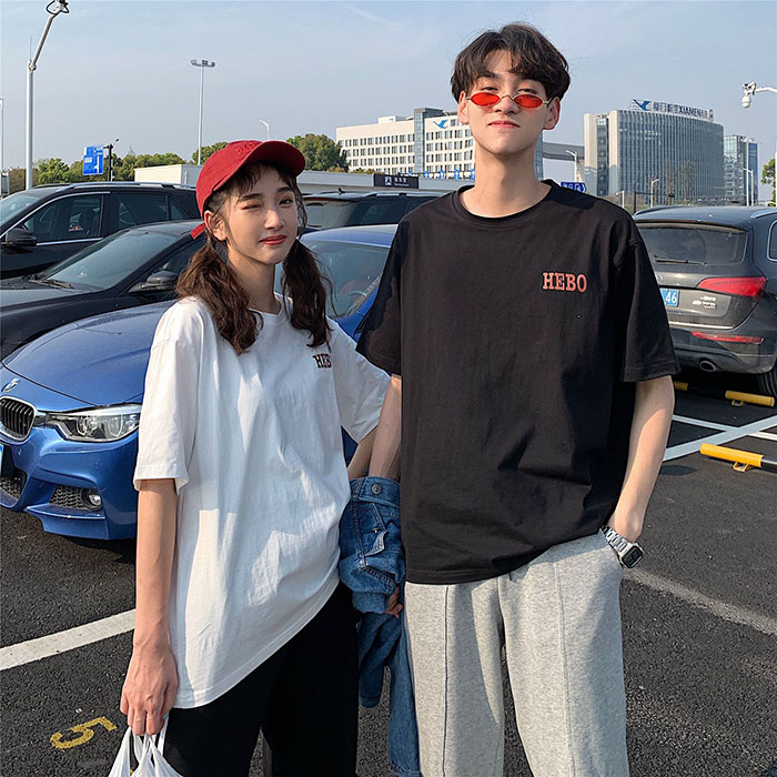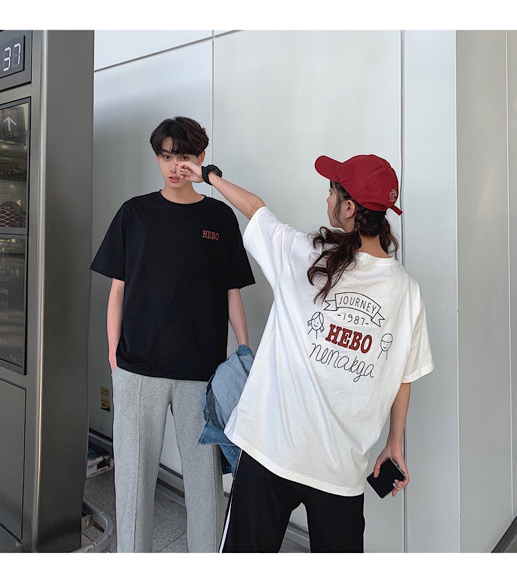 ペアルック tシャツ カップルペアルック 春夏 大きいサイズ カジュアルシャツ ゆったり スウェットインナー クルーネックtシャツ カップルお揃い 半袖 綿 可愛い 英文字ブラックblack/ホワイトwhite S-5XL