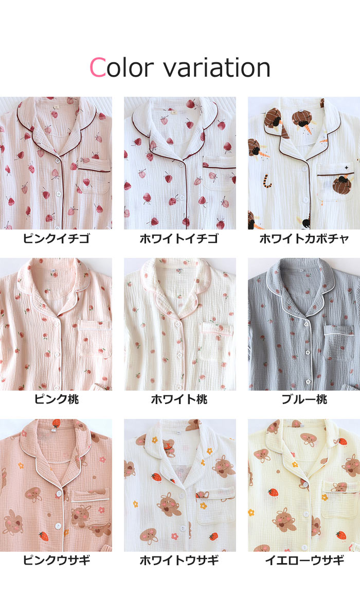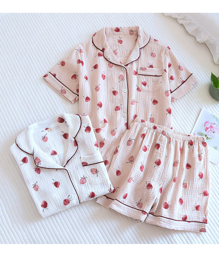 可愛いガーゼパジャマレディース半袖薄手