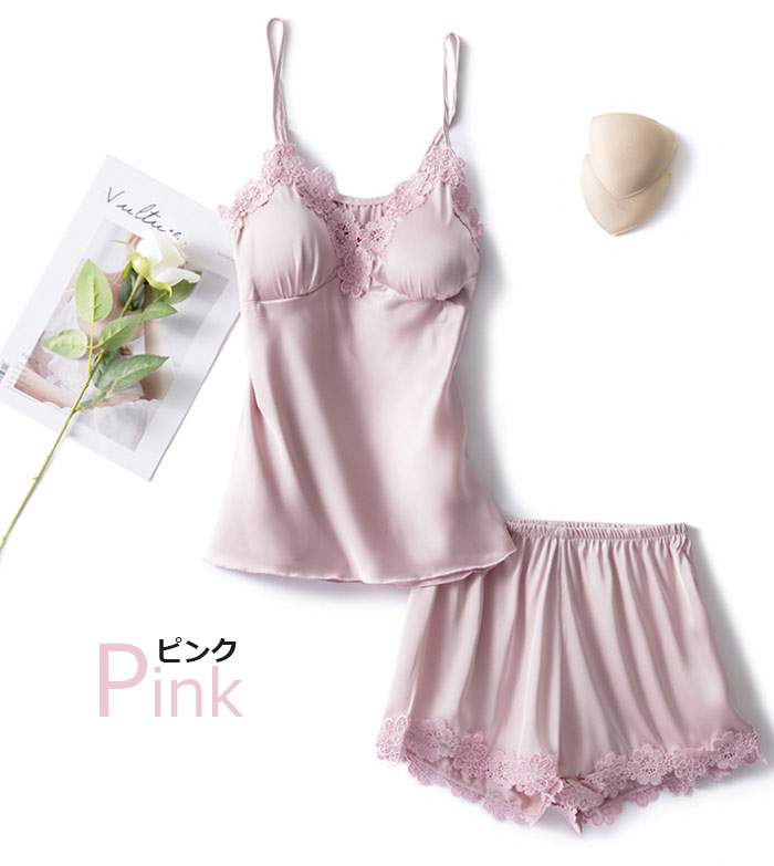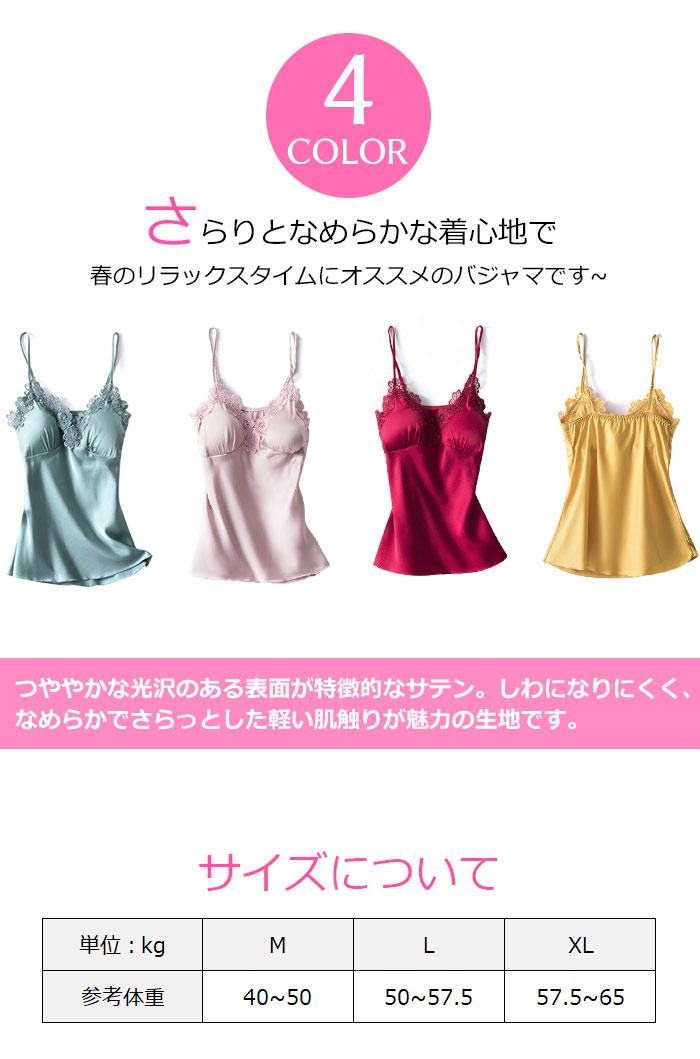 キャミソール カップ付 美盛り部屋着 セクシー ランジェリー 可愛い おしゃれ 綺麗 きれい 女性らしさ キャミソール 上下セット 韓国 合成シルク 涼しい