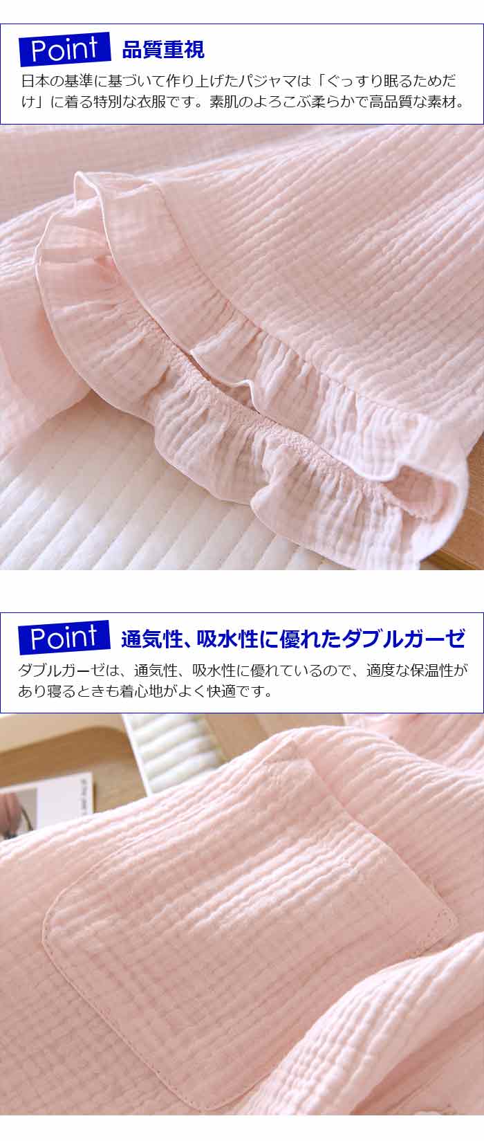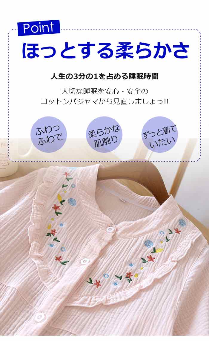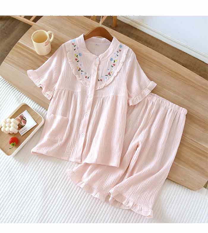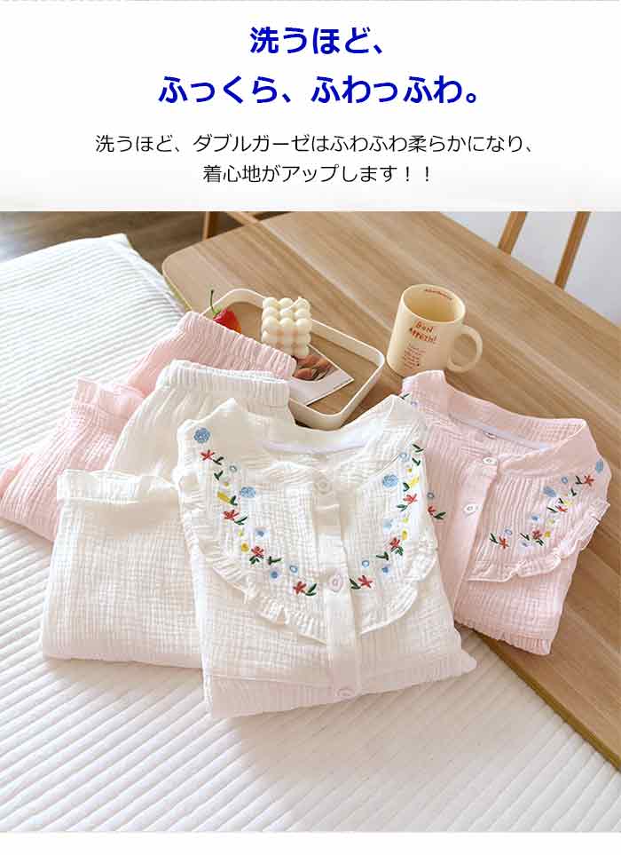 可愛いフレア襟のダブルガーゼパジャマ