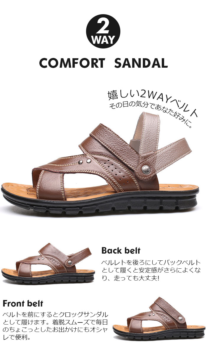 サンダル メンズ 大きいサイズ スポーツサンダル コンフォートサンダル ビーチサンダル シューズ レザー カジュアルサンダル 2way スリッパ 靴 スリッパ 韓国 革 ビジネス靴 フォーマルシューズ 夏用 ブラック キャメル ブラウン23.5-27 父の日