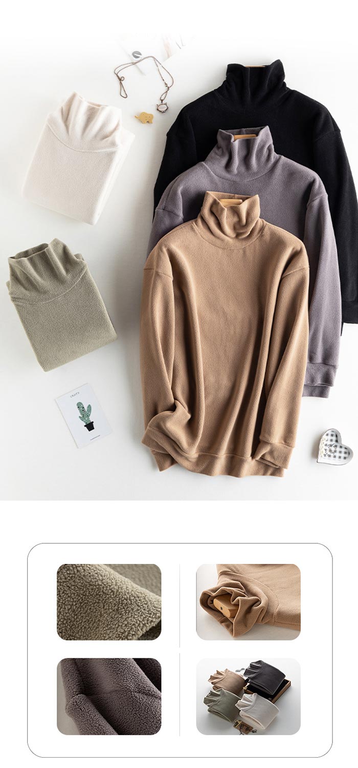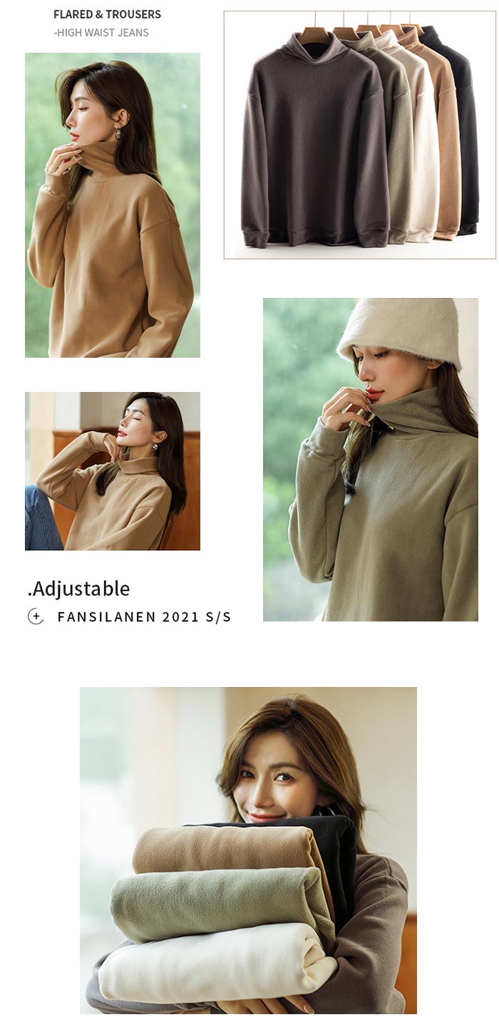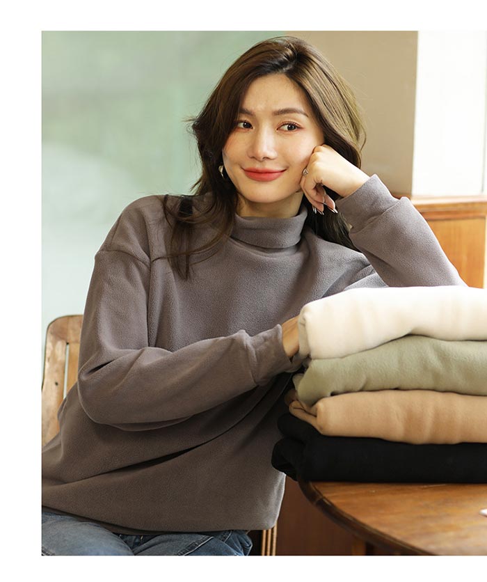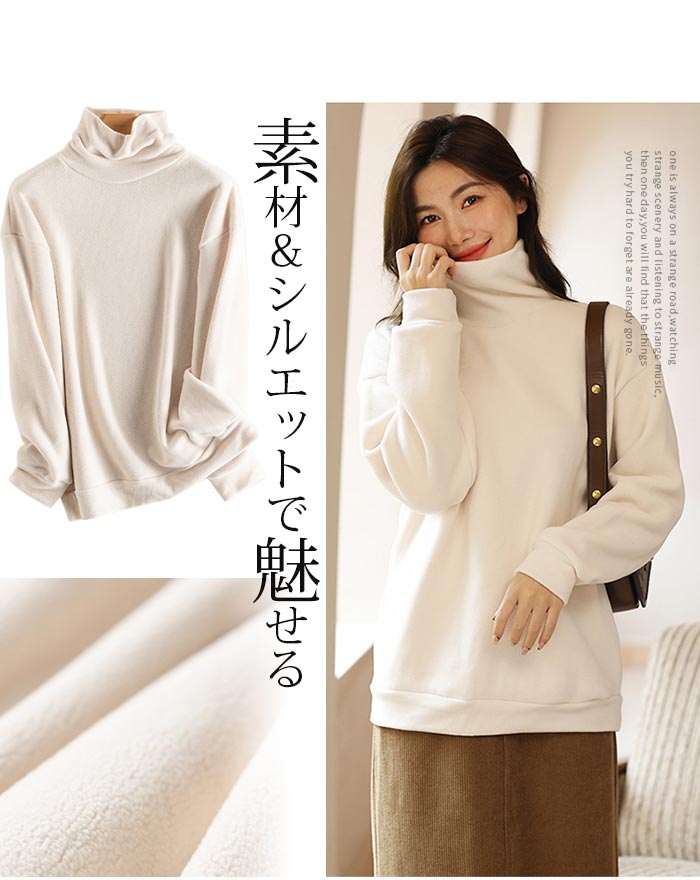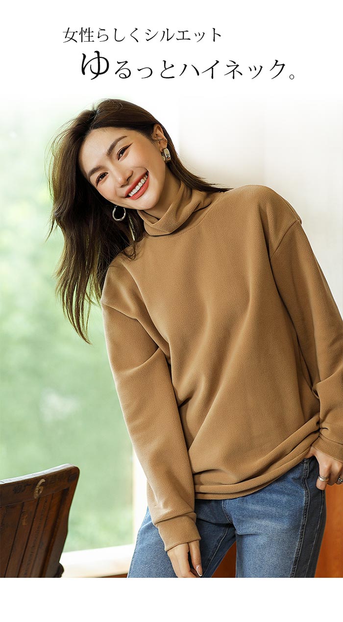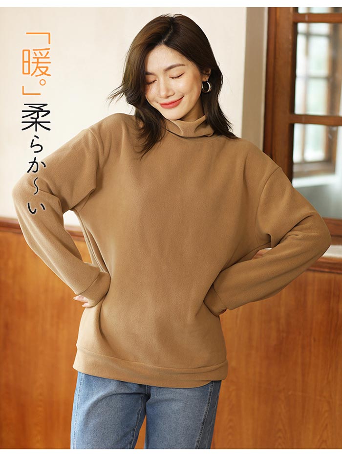 無地 シンプルなフリース レディースフリース タートルカットソー 長袖 レディース タートルネック 極上な着心地 ゆるっとしたタートル襟 タートルネックカットソー