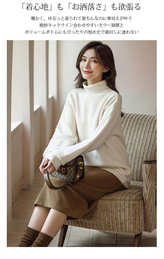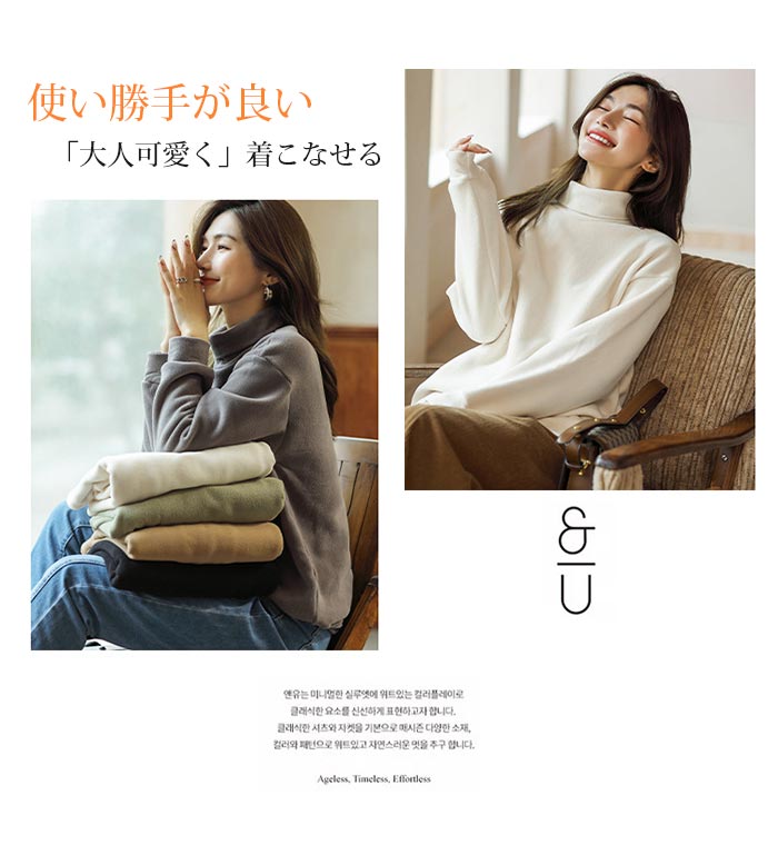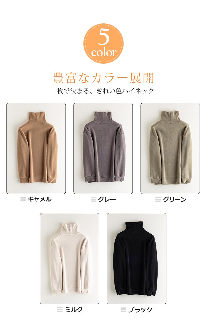 優しい肌触りのタートル プルオーバー。ぬくぬく ぽかぽか あたたかい着心地で保温性があるので、1度着たら手放せなくなりそうな着心地。ストレッチ性(伸縮)バツグンだから動きやすい のも魅力で、身体に程良くフィットするので快適です。レイヤードして襟ぐりや袖口からのチラ見せコーデも おすすめ。オーバーオールやオールインワンとの重ね着コーデや、ノーカラーのジャケットやブルゾンのインナーとしても使えます。スーツの下に着ることもできるので、オフィスカジュアルにも おすすめ。