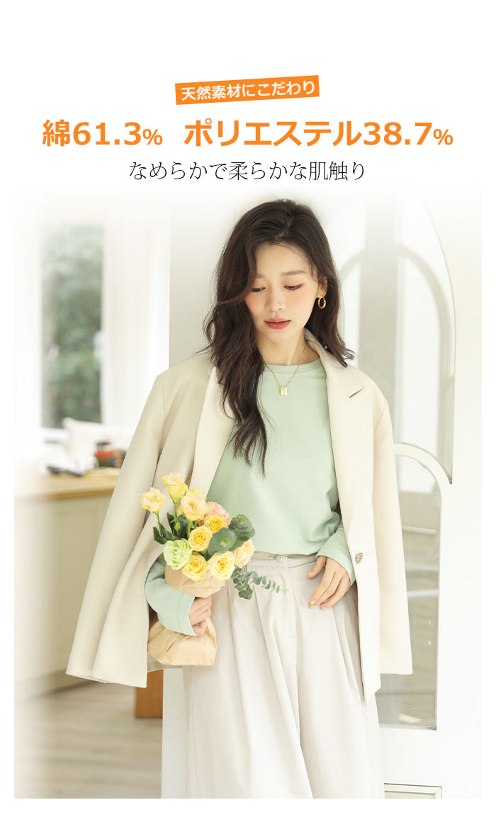 素材 綿61.3% ポリエステル38.7%カラー展開 【ミルク】【オレンジ】【ベージュ】【ブルー】【グリーン】【パープル】【ミント】【ホワイト】サイズ展開 【M】【L】生産国 中国ガイド ※大量生産による生産過程におきまして、若干の個体差(1cmから2cm)が生じる場合がございます。