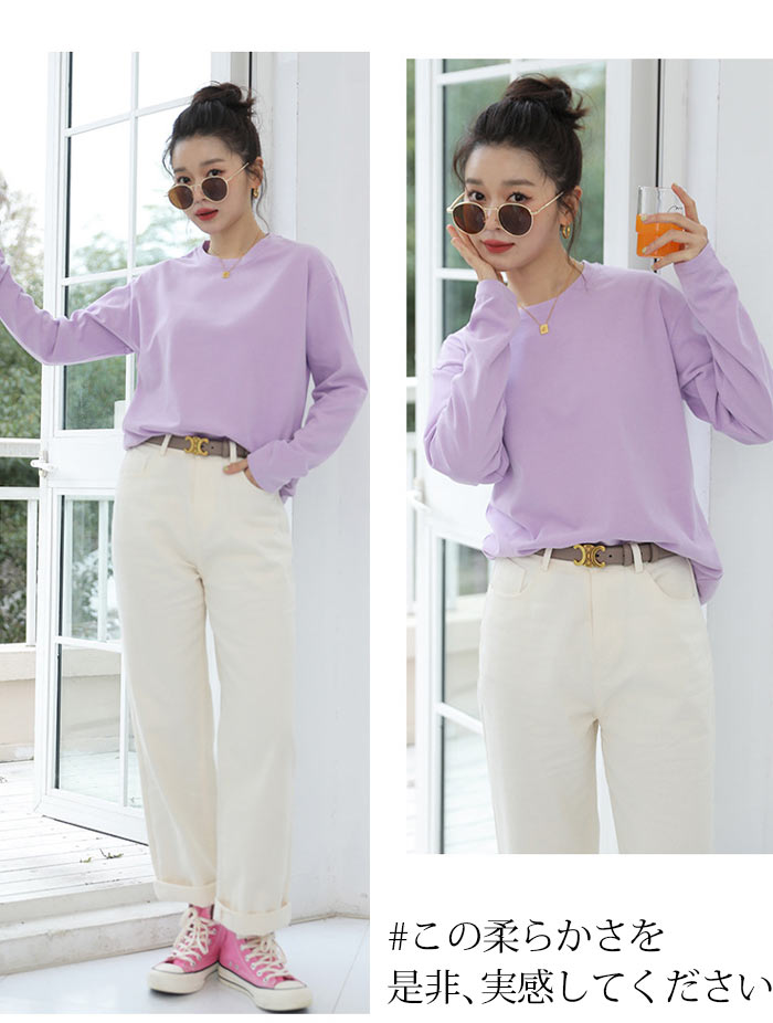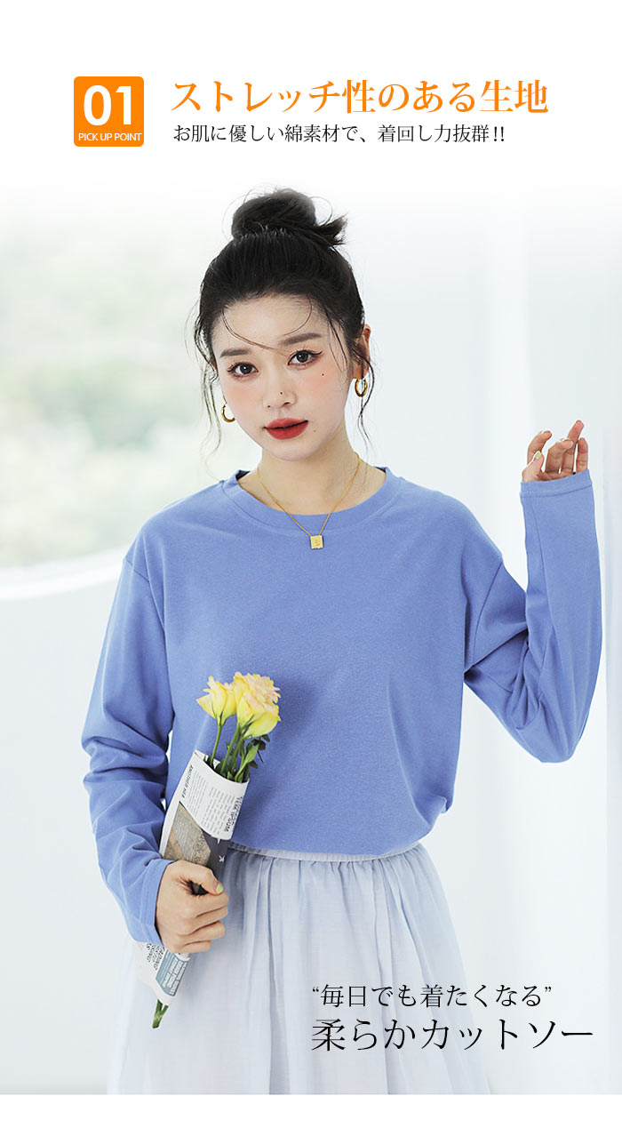 長袖 tシャツ レディース ロンT カットソー カジュアル シンプル 極上な着心地 小顔効果 ふんわり柔らかい 伸縮 着回し抜群 大人カジュアル OL 通勤 通学