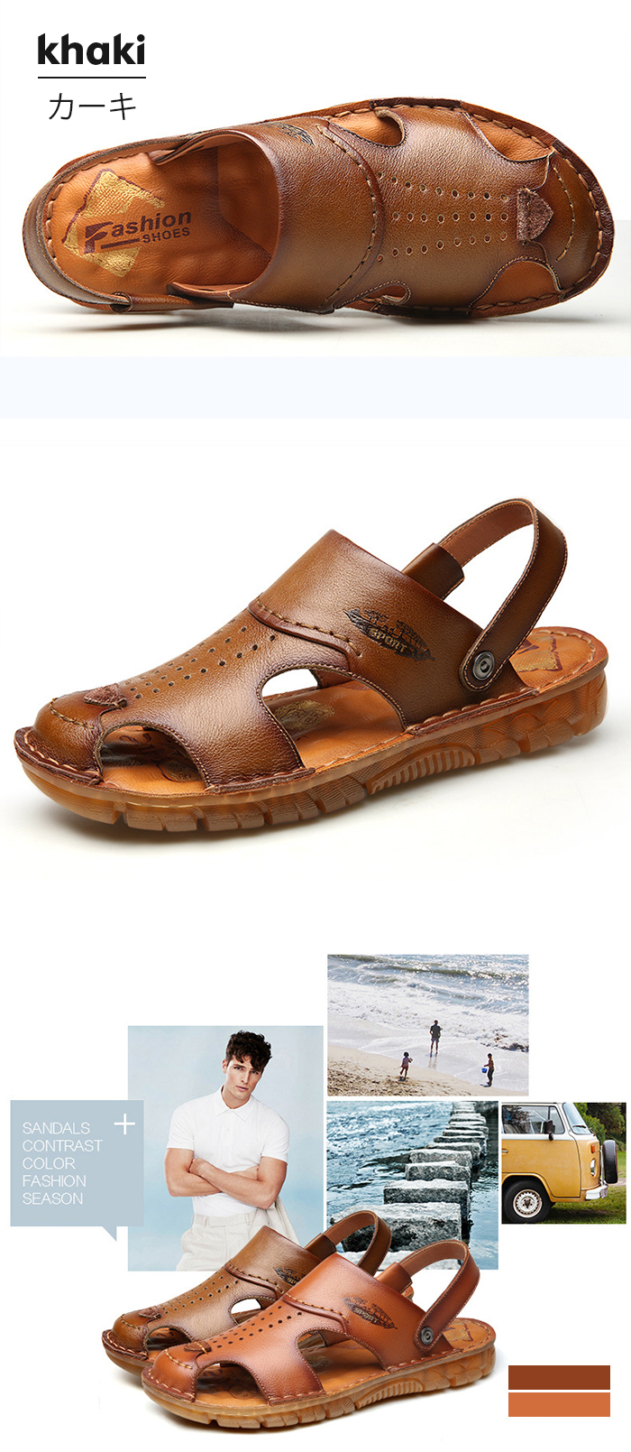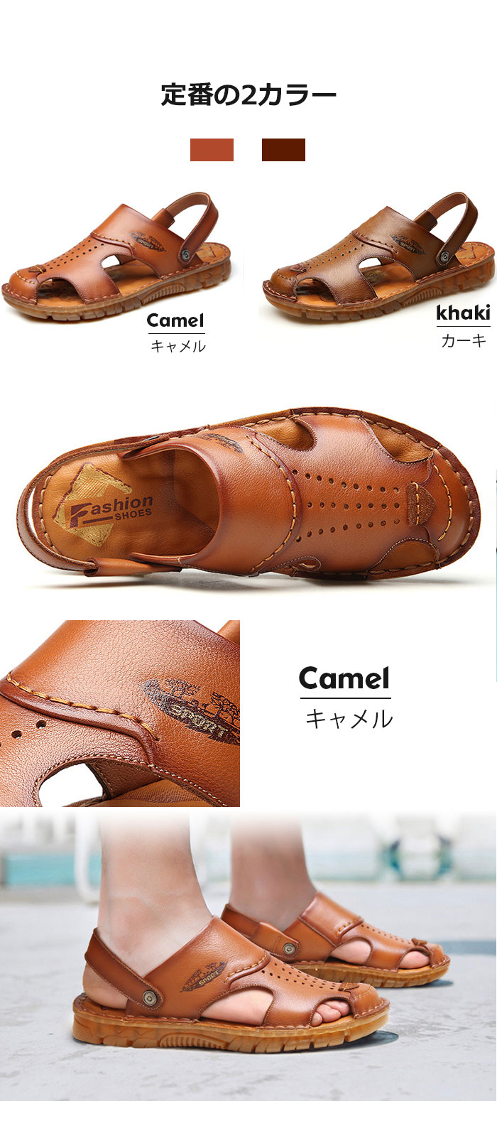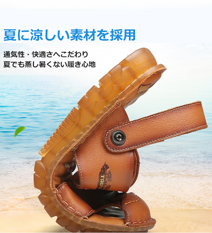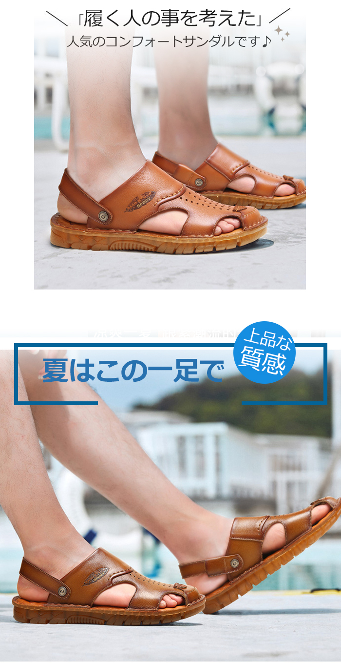 スポーツサンダル メンズ コンフォートサンダル ビーチサンダル 大きいサイズ 皮 カジュアルサンダル 2way 本革 スリッパ ビジネス靴 フォーマルシューズ 夏用 カーキ キャメル 24-27 父の日