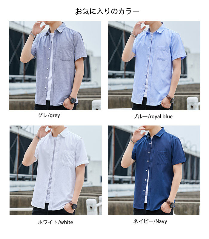 ワークシャツ 半袖 メンズ 大きいサイズ ワイシャツ 無地 カジュアルシャツ yシャツ ビジネスシャツ オープンカラー レギュラーカラー ワイドカラー 白シャツ 夏シャツ 薄手 4色/ブルー/ホワイト/グレー/ネイビー/M-5XL ビッグサイズ
