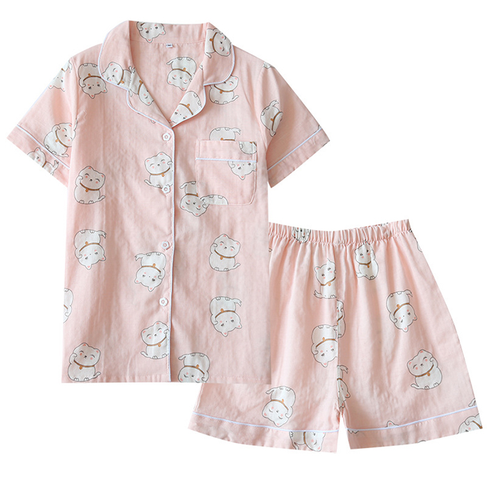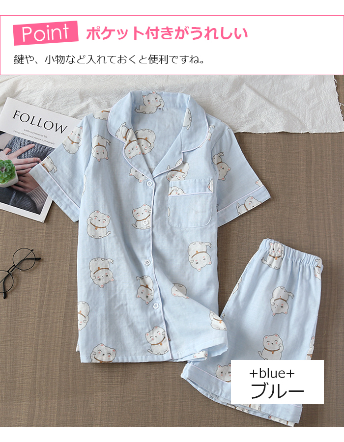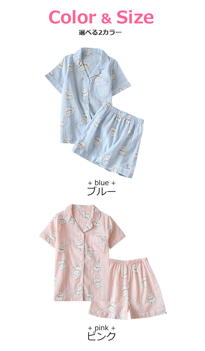 即納 半袖パジャマ レディース 前開き 短パン 上下セット 大人用 部屋着 入院 産後 インナー ナイトウエア 2点 プレゼント パジャマ 綿100% 寝巻き 浴衣 二重ガーゼ 夏 薄手 半袖 かわいい ピンク/ブルー/M/L/XL 敬老の日