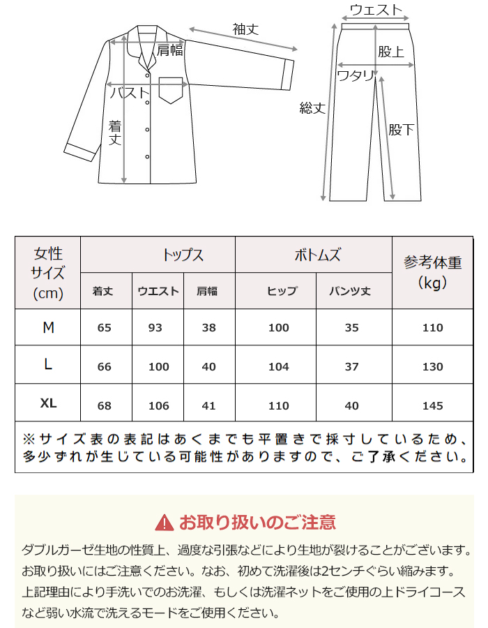 着脱が楽な前開タイプなので、い入院用のパジャマとしてもオススメの一着です