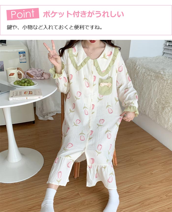 ワンピースパジャマ 可愛いセーラー襟マ