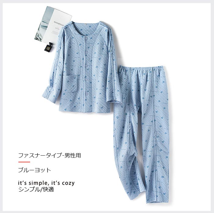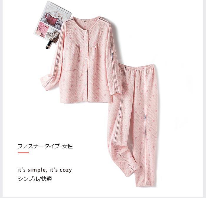 ピンク ブルー介護服 パジャマ 女性用