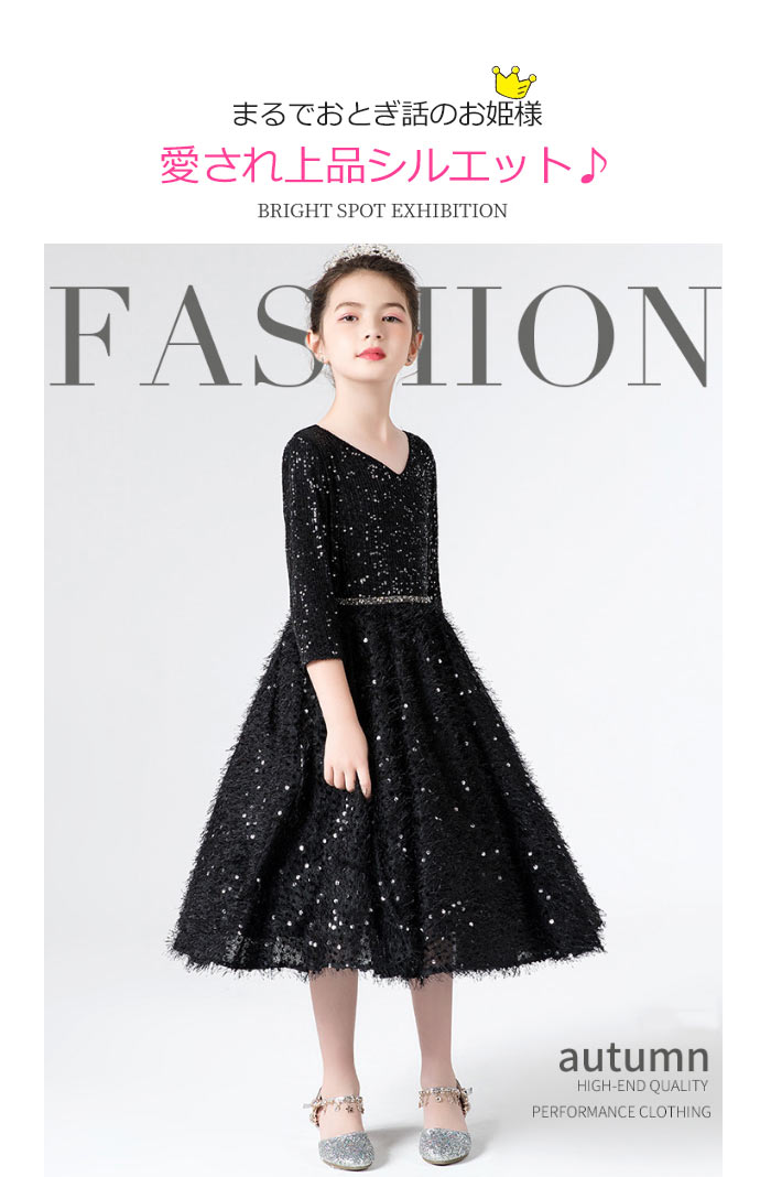 キラキラしてる七分袖丈と膝丈ピアノ発表