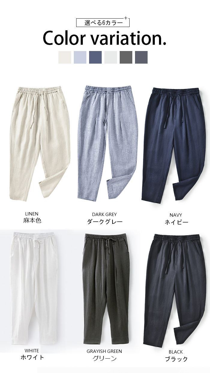 リネンパンツ麻 薄手 涼しい 無地冷感