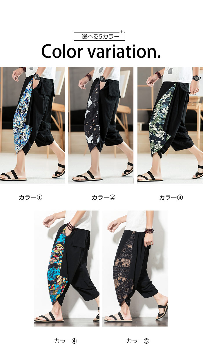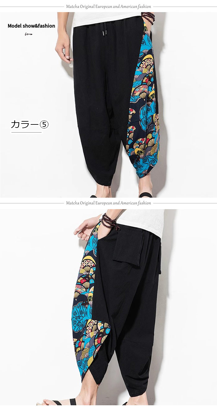 リネンパンツ 夏用サルエルパンツ 冷