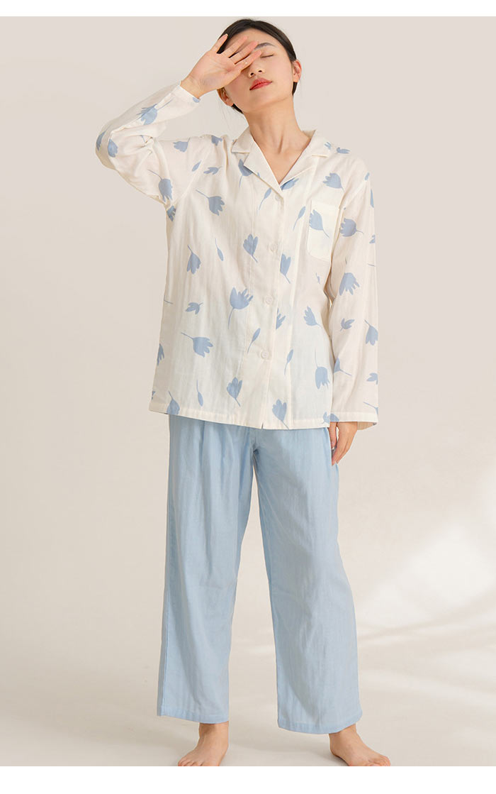 肌が綺麗に見せてくれるフレア襟のダブルガーゼパジャマです。