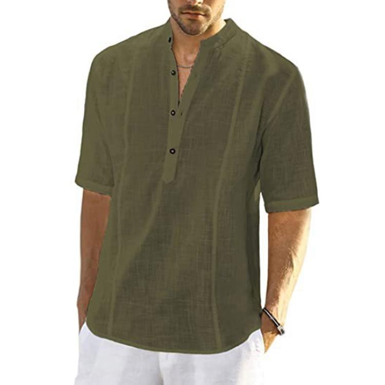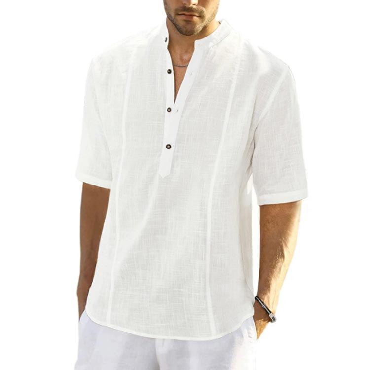 半袖シャツ メンズシャツ 立ち襟 リネ