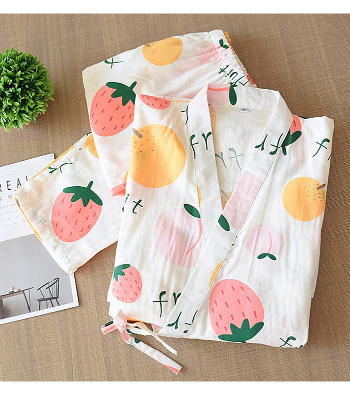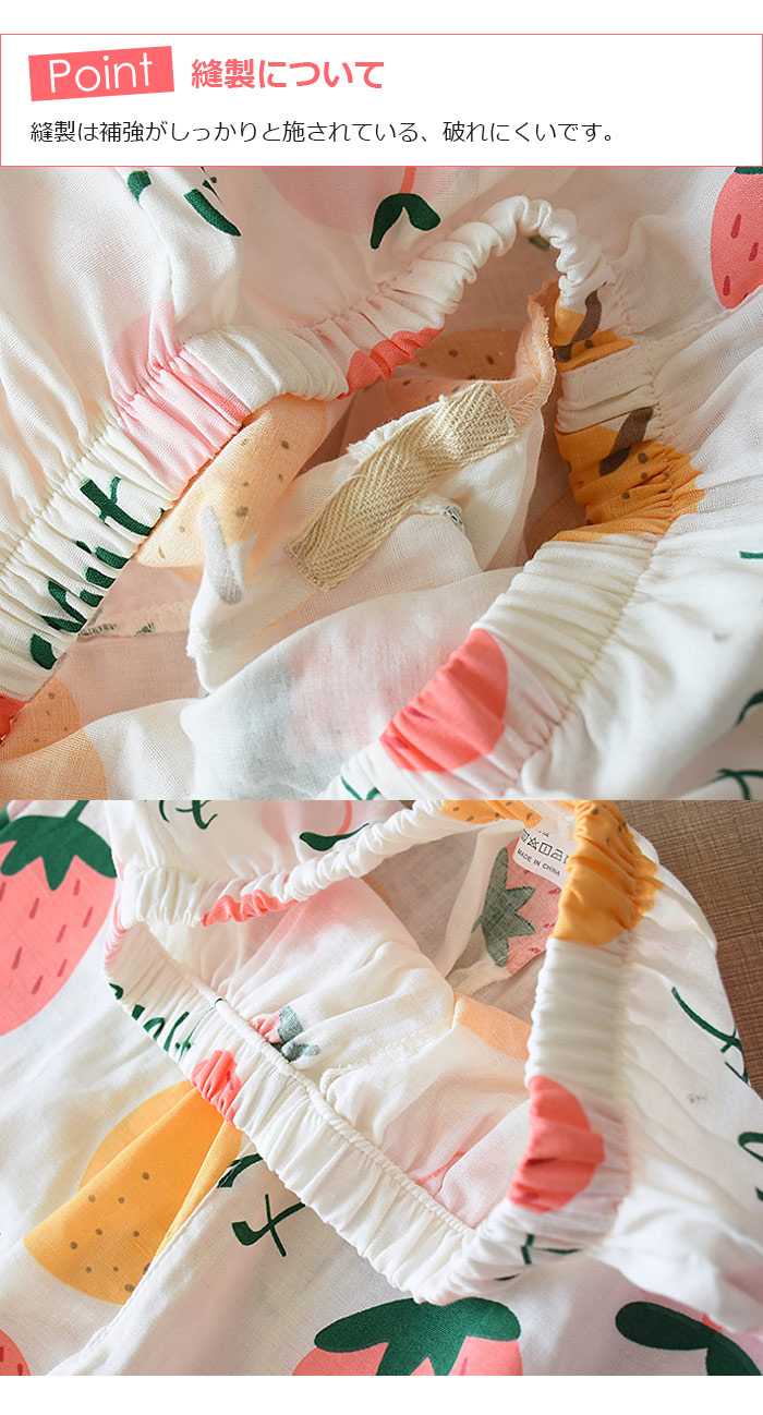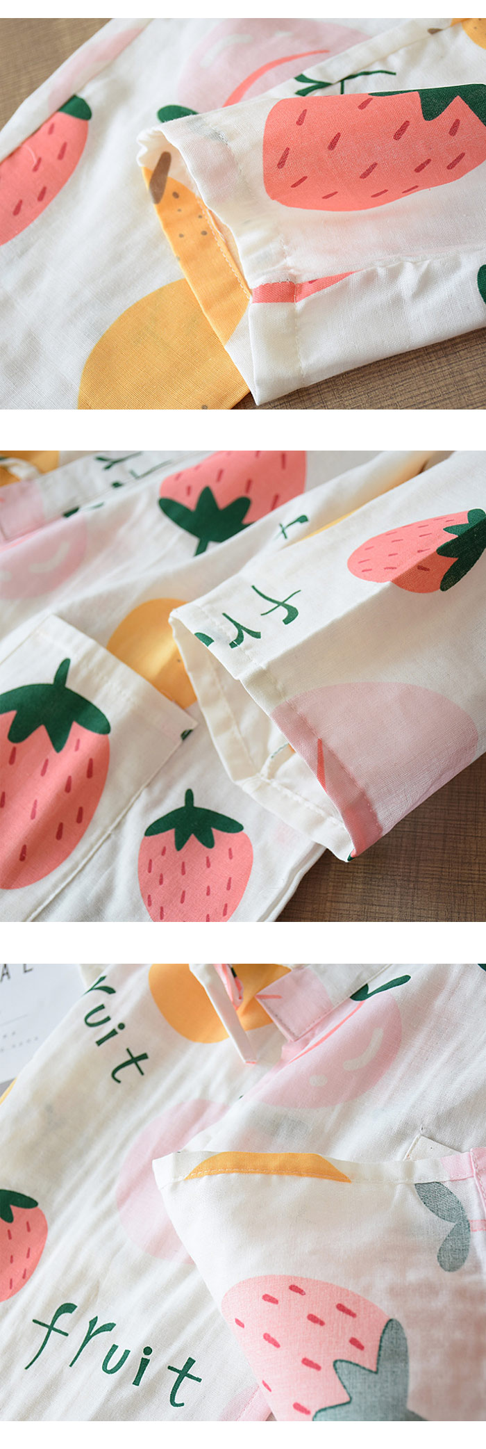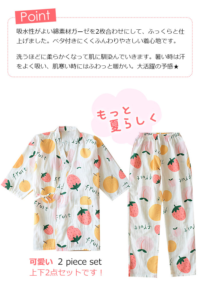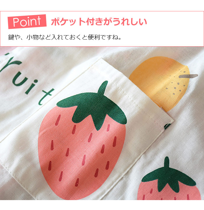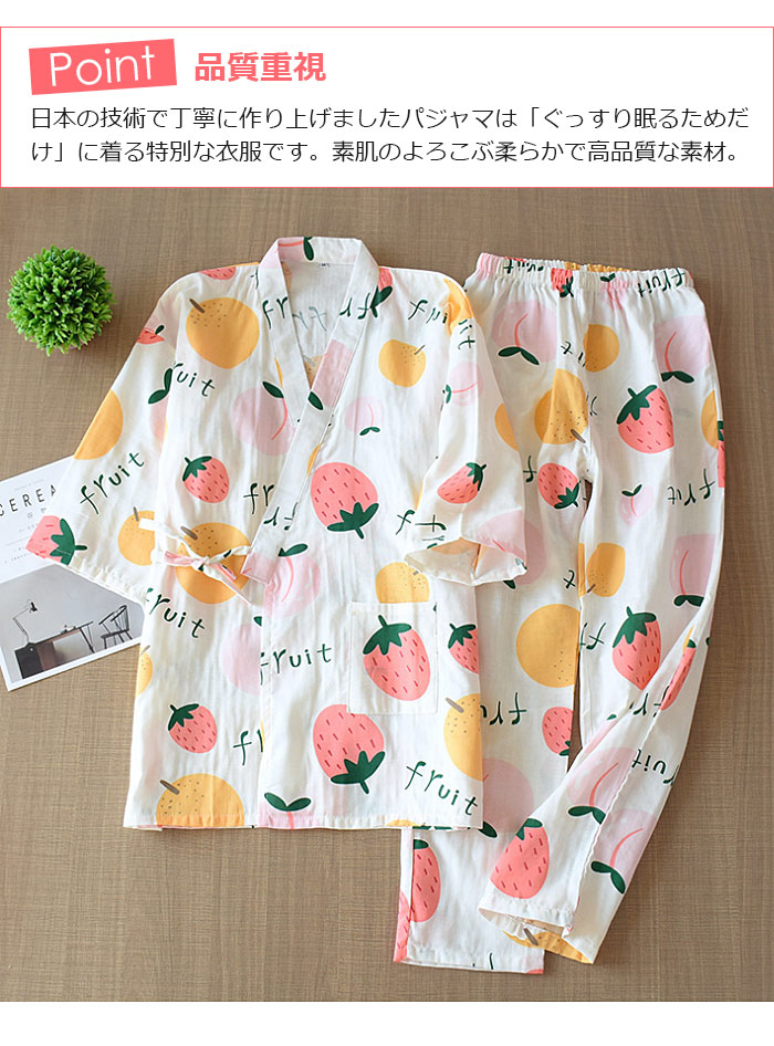 パジャマ 綿100% レディース 春夏 ガーゼパジャマ 前開き 可愛い イチゴ柄 和風 ルームウエア 上下セット 部屋着 綿 セットアップ 2点セット 七分丈 2重ガーゼ 半袖 春 夏涼しい寝間着 ギフト 結婚式お祝い 敬老の日
