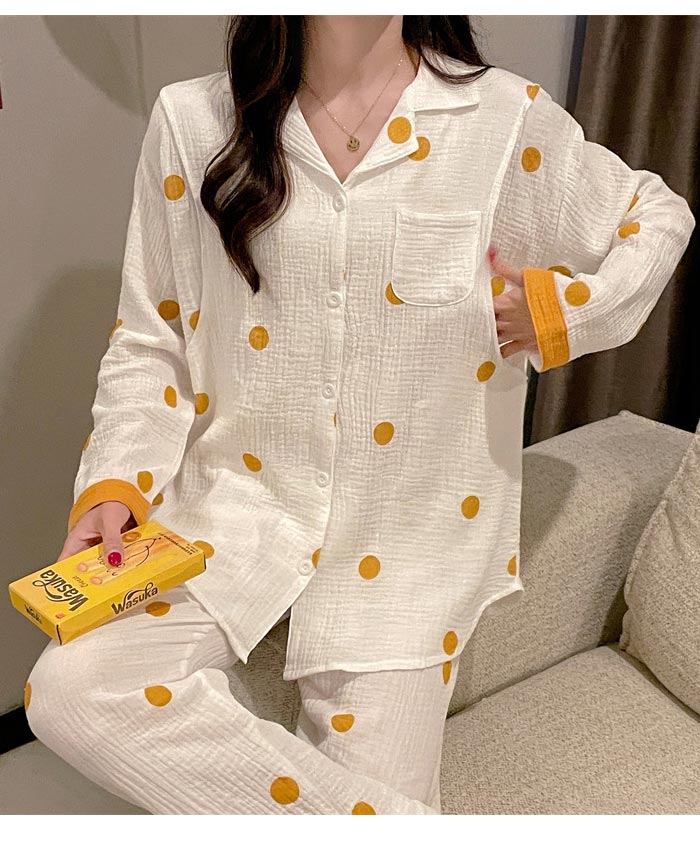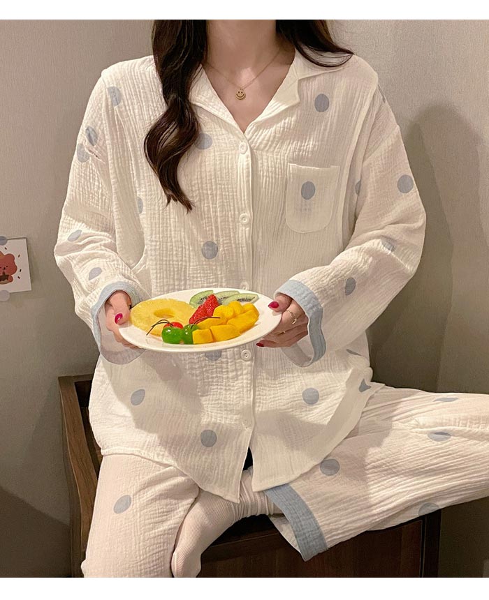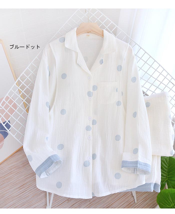 ドット柄二重ガーゼパジャママタニティ