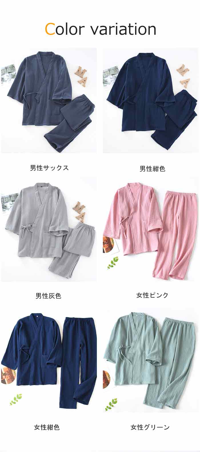 カップルペアパジャマ 七分丈 長ズボン
