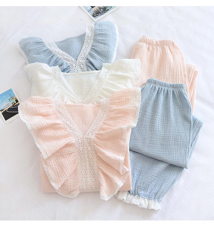 可愛いフレア襟母の日ギフトダブルガーゼ